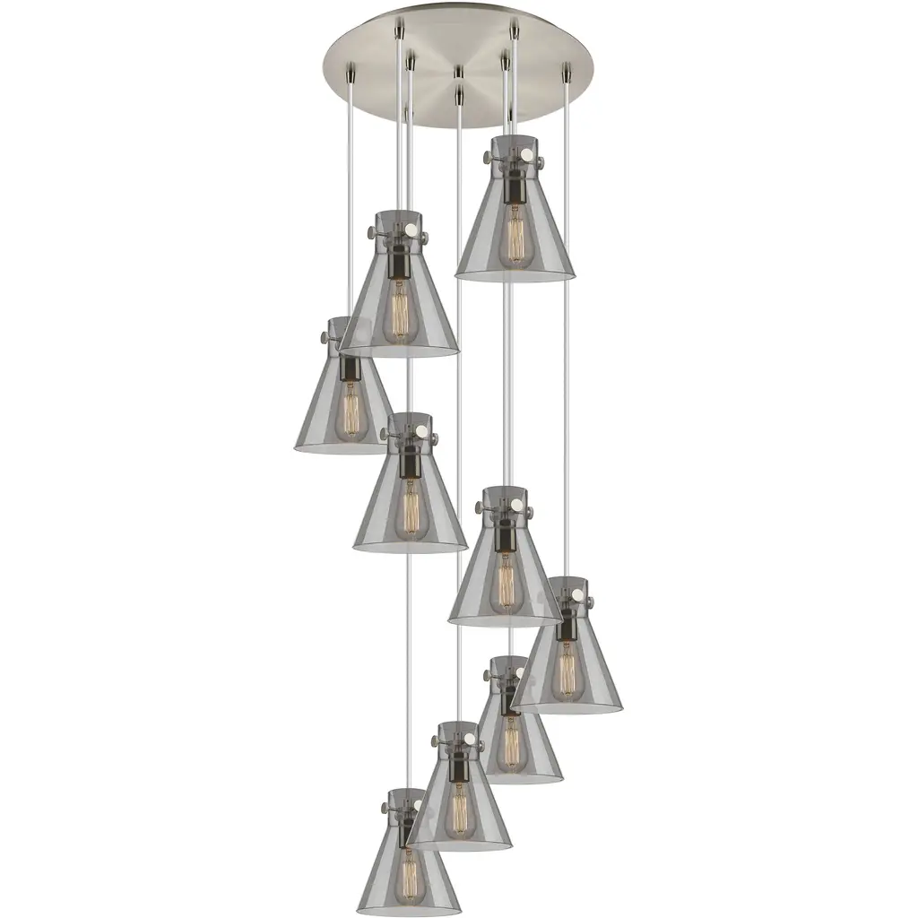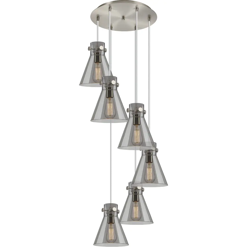 Newton Cone 6 Light 18.63 Inch Polished Nickel Multi Pendant Ceiling Light In Light Smoke Glass