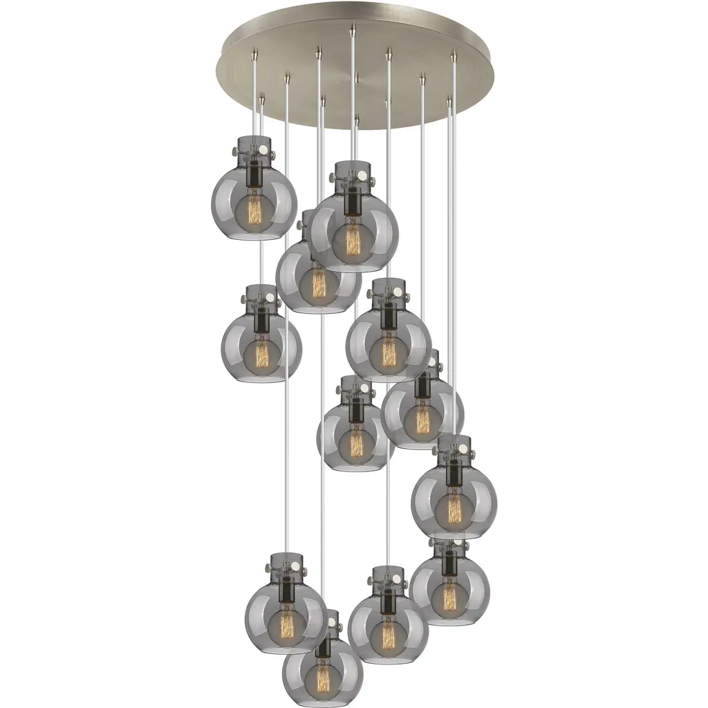 Newton Sphere 12 Light 27.25 Inch Matte Black Multi Pendant Ceiling Light In Light Smoke Glass