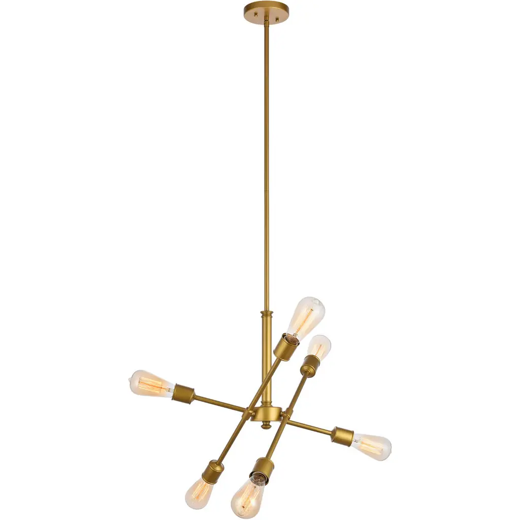Modern sophistication with a jaunty presentation. This Newtown pendant features three adjustable crossing arms mounted on a central rod to direct light in any direction. A total of six light sources (bulbs not included) in a compact design offers functional beauty in smaller spaces. The absence of shades says industrial; the design says penthouse. The smooth steel hardware is finished in soft brass, adding a luxurious flair. Stylish and cutting-edge without being too eccentric.