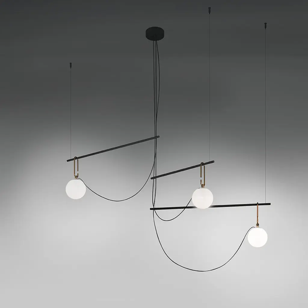 Artemide’s nh S3 14 pendant, featuring three white glass spheres, slim, curved brass rings and black steel rods, is unique and surprisingly versatile: the position of the spheres can be adjusted by moving the brass rings along the steel rods. The nh S3 14 pendant was designed by the Shanghai-based design office Neri&Hu, who have created a simple and interesting blend of timeless traditions and fresh innovations.