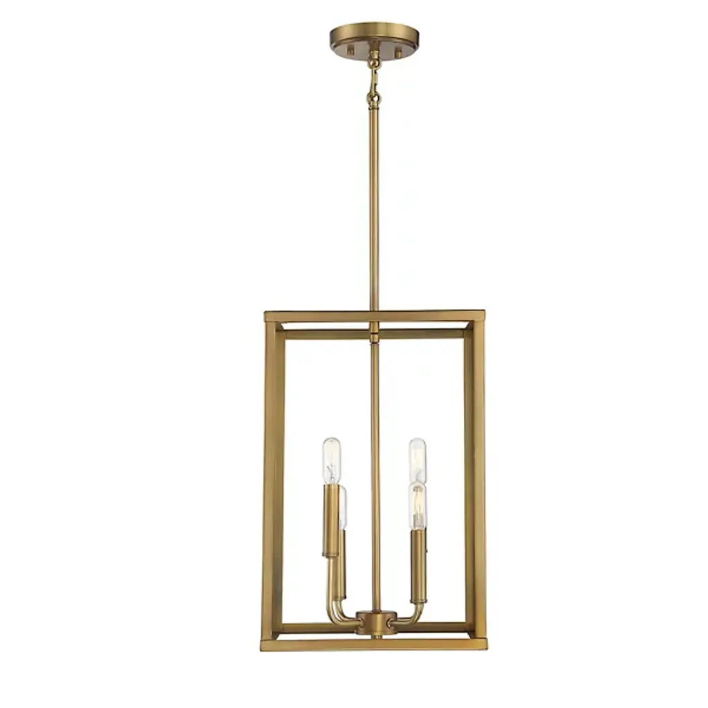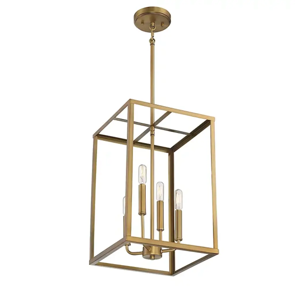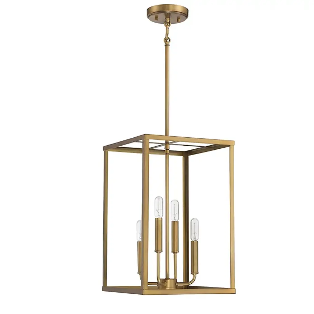 The Nick Pendant by Alder & Ore brings a simple, structured touch to spaces. Supported by a single stem and round canopy, this pendant has an openly styled, rectangular framework that surrounds an exposed set of candelabras. Shining freely, these lights are paired with smooth bases and gently curved arms with a beautiful finish that matches the frame around them. Lending an even layer of illumination to surroundings, this design has a fresh, charming look that works with a wide range of rooms and décor styles.