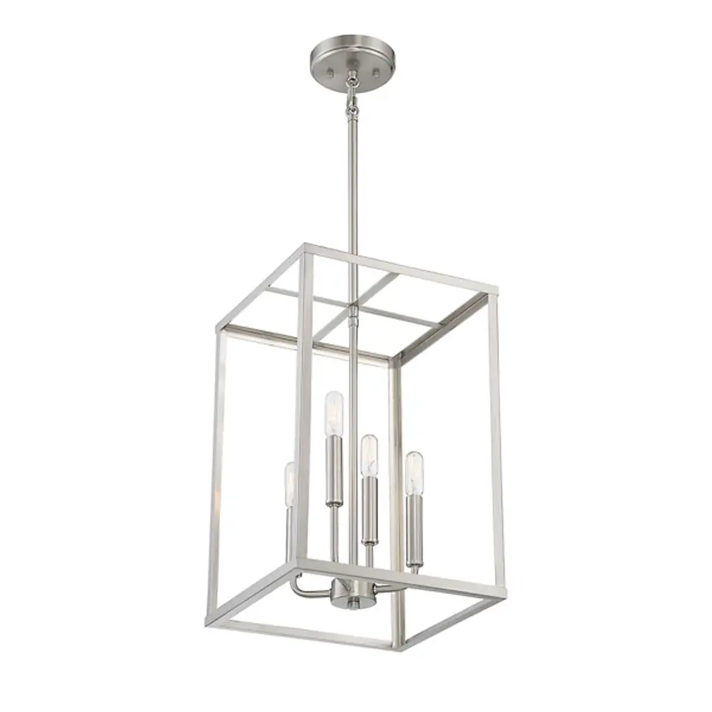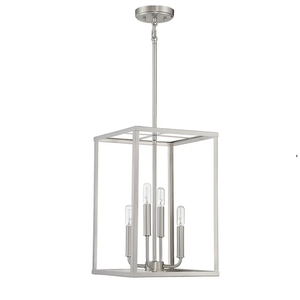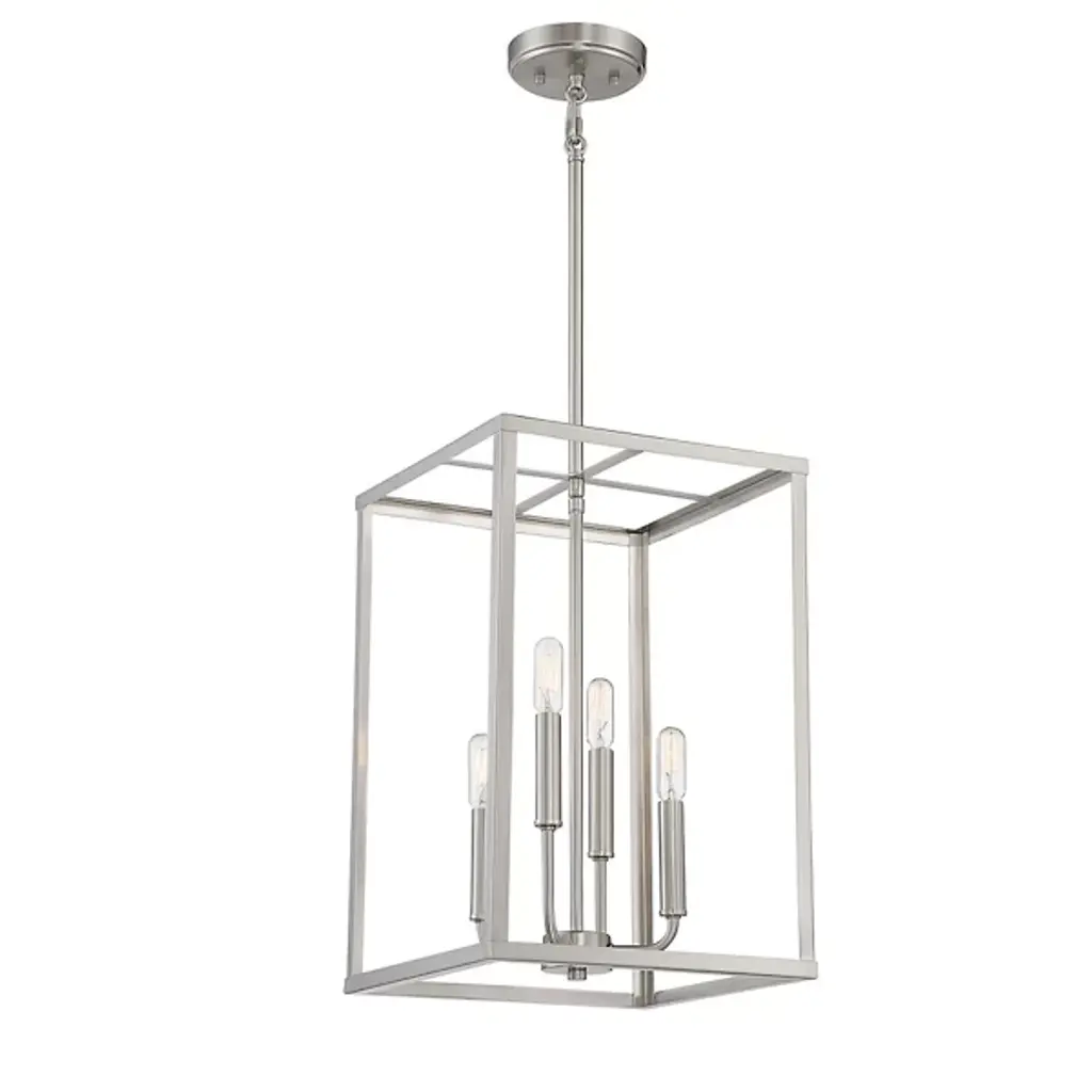 The Nick Pendant by Alder & Ore brings a simple, structured touch to spaces. Supported by a single stem and round canopy, this pendant has an openly styled, rectangular framework that surrounds an exposed set of candelabras. Shining freely, these lights are paired with smooth bases and gently curved arms with a beautiful finish that matches the frame around them. Lending an even layer of illumination to surroundings, this design has a fresh, charming look that works with a wide range of rooms and décor styles.