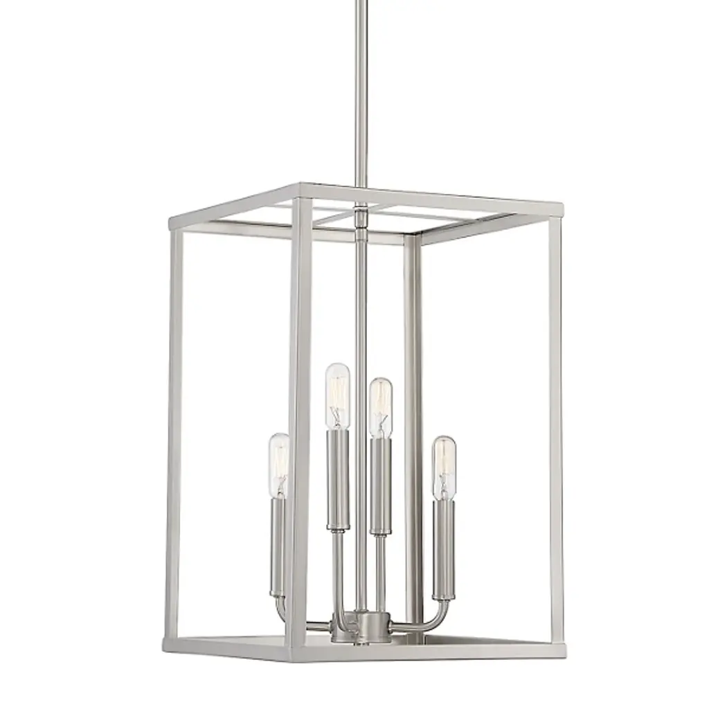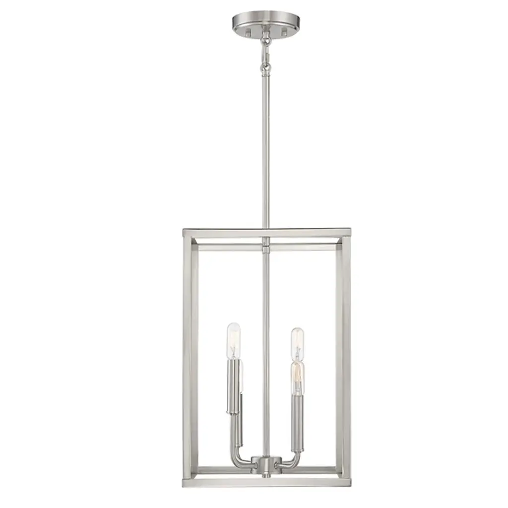 The Nick Pendant by Alder & Ore brings a simple, structured touch to spaces. Supported by a single stem and round canopy, this pendant has an openly styled, rectangular framework that surrounds an exposed set of candelabras. Shining freely, these lights are paired with smooth bases and gently curved arms with a beautiful finish that matches the frame around them. Lending an even layer of illumination to surroundings, this design has a fresh, charming look that works with a wide range of rooms and décor styles.