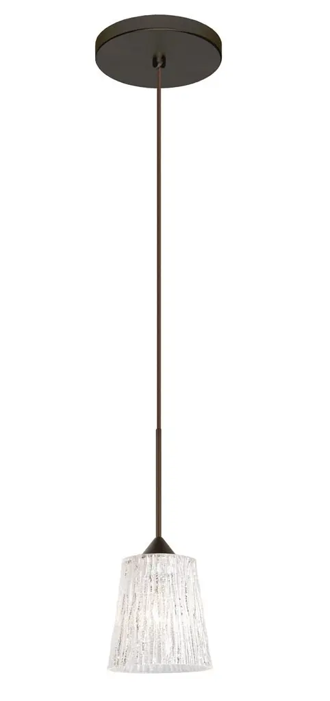 Nico 4 features a tapered drum shape that fits beautifully in transitional spaces. Our Glitter Stone glass is a clear blown glass with an outer texture of coarse sandstone. Inspired by the elements of nature, the appearance of the surface resembles the beautiful cut patterning melting ice over a rock formation. Then a technologically advanced crystal coating is applied to the inside. The coating contains multiple micro-layers of glass particles that create unique prismatic optical properties, which effectively alter both the reflected and transmitted light. So unlit, it appears like a frosted glass; when lit, it becomes alive with dazzling light effects. This blown glass is handcrafted by a skilled artisan, utilizing century old techniques that have been passed down from generation to generation. Each piece of this décor has its own artistic nature that can be individually appreciated. The 12V cord pendant fixture is equipped with a 10' braided coaxial cord with Teflon jacket and a low profile flat monopoint canopy. These stylish and functional luminaries are offered in a beautiful brushed Bronze finish.
