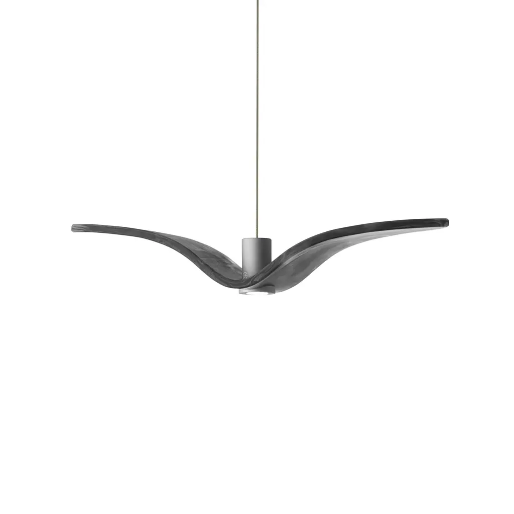 Let your interiors take flight with the Night Birds Mini LED Pendant Light from Brokis. Designed by Boris Klimek in the Czech Republic, this elegant fixture features slender cables descending from a stepped circular ceiling mount, each ending in a sleek cylindrical housing. Translucent glass accents shaped like delicate wings emit a soft, glowing light that captures the graceful motion of flight, adding a refined and artistic touch to any space. Highlights