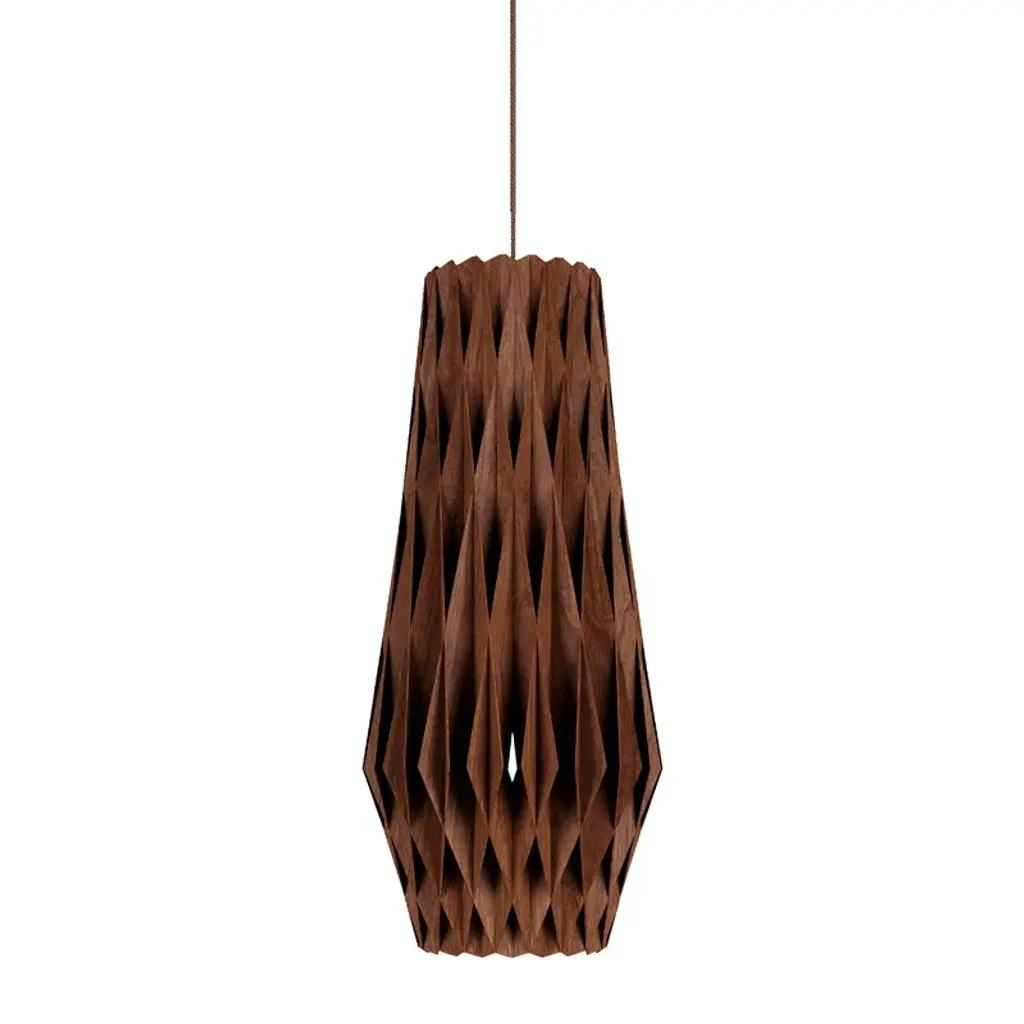 Named for the native New Zealand palm tree, the David Trubridge Nikau Pendant pays tribute to that tree's lanky height and distinctive bulbous crownshaft. The tree's form is recreated here out of sweeping bands of Natural Bamboo bounded together with aluminum rivets. The final piece is nearly six feet long, particularly impressive in tall spaces.