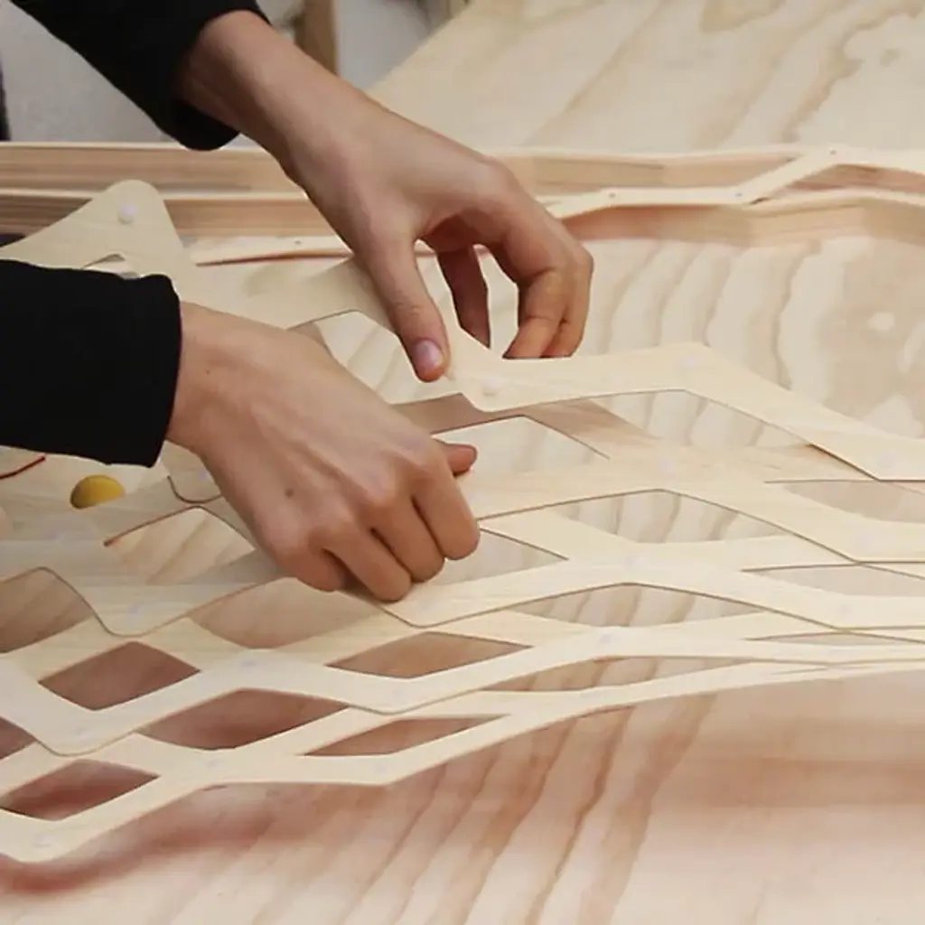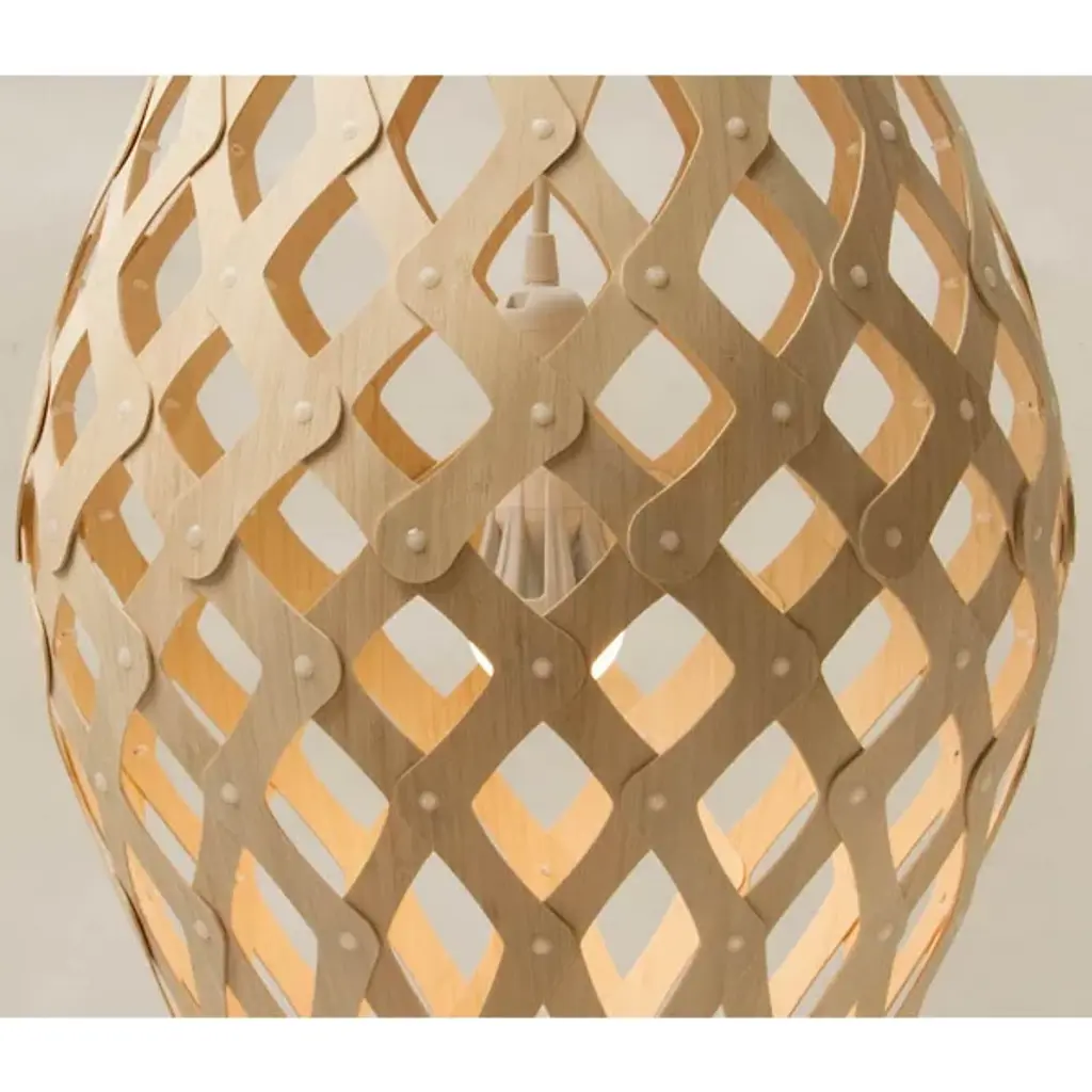 Named for the native New Zealand palm tree, the David Trubridge Nikau Pendant pays tribute to that tree's lanky height and distinctive bulbous crownshaft. The tree's form is recreated here out of sweeping bands of Natural Bamboo bounded together with aluminum rivets. The final piece is nearly six feet long, particularly impressive in tall spaces.