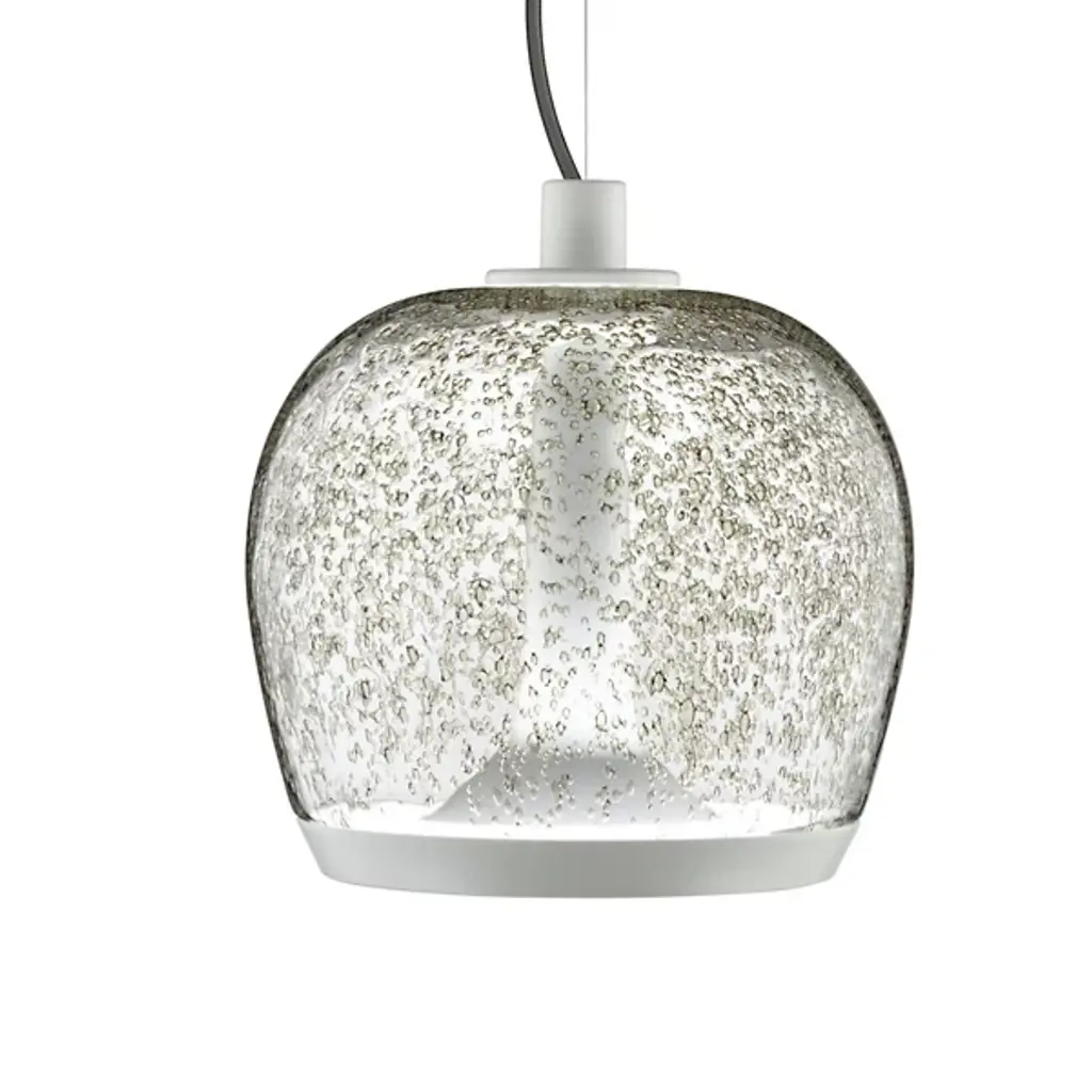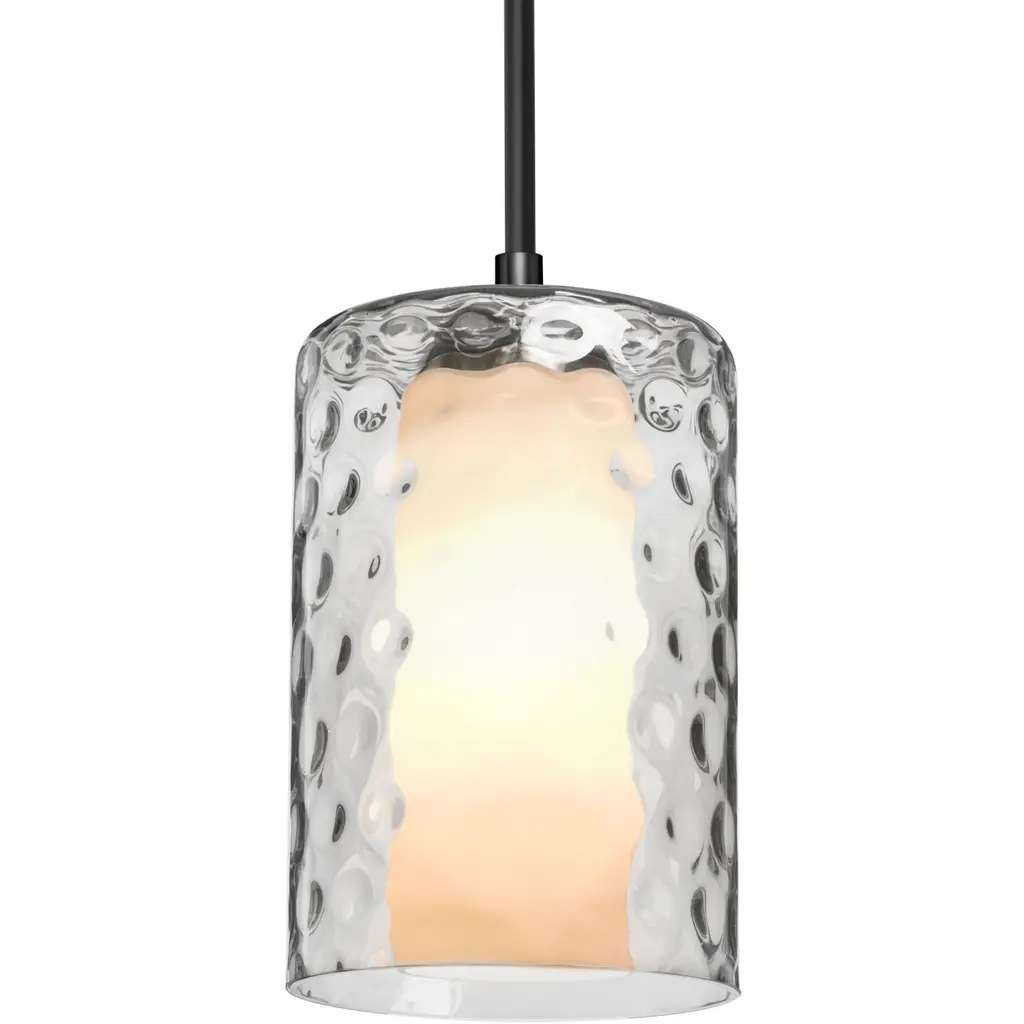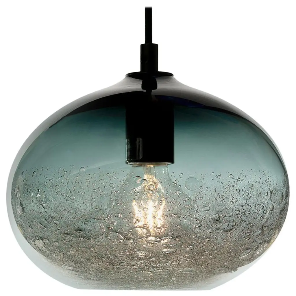 The Niles Blue/Opal is composed of a broad tranparent blue glass cylinder, with an interesting bubble pattern blown randomly throughout the glass and an inner opal cylinder for concealing the light source. The pleasing play of light through the bubble accents make for a striking affect, along with the popular theme of this transitionally designed pendant. The cord pendant fixture is equipped with a 10' SVT cordset and a low profile flat monopoint canopy. These stylish and functional luminaries are offered in a beautiful Black finish.