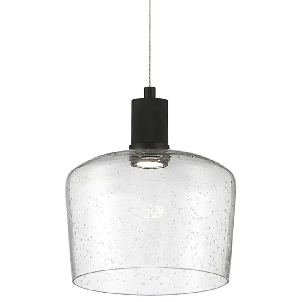The Niles Clear/Opal is composed of a broad clear glass cylinder, with an interesting bubble pattern blown randomly throughout the glass and an inner opal cylinder for concealing the light source. The pleasing play of light through the bubble accents make for a striking affect, along with the popular theme of this transitionally designed pendant. The cord pendant fixture is equipped with a 10' SVT cordset and a low profile flat monopoint canopy. These stylish and functional luminaries are offered in a beautiful Satin Nickel finish.