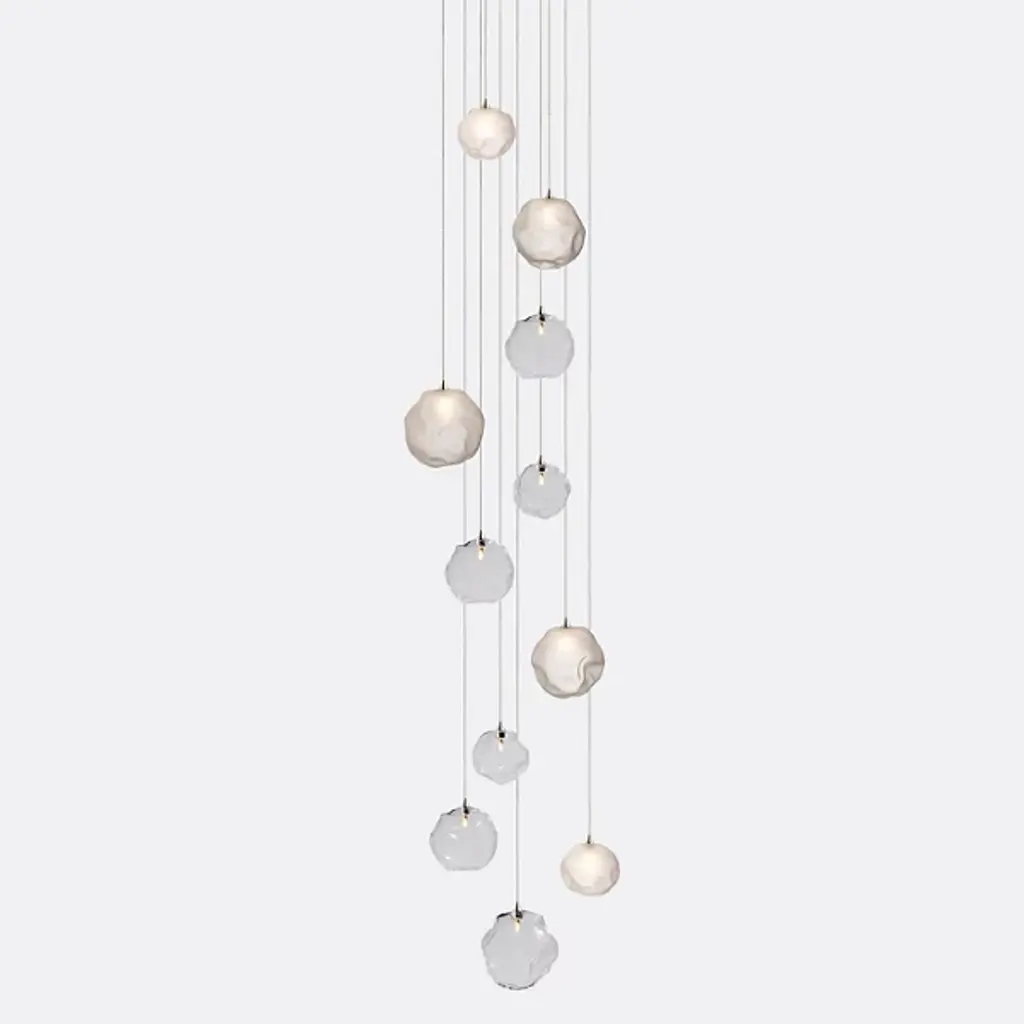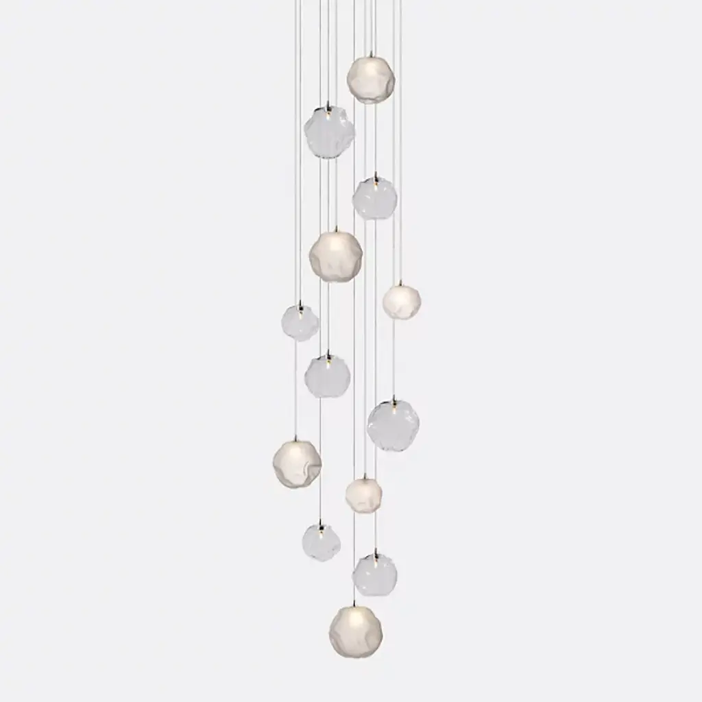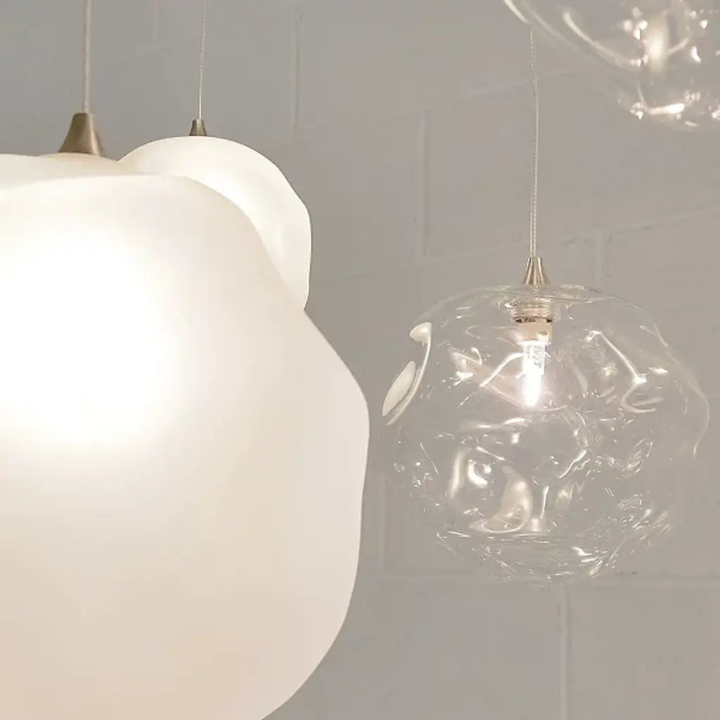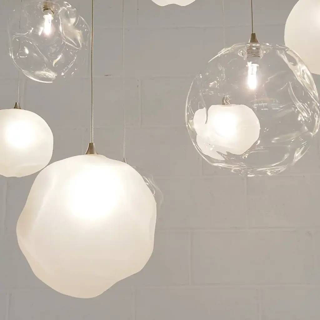 The Nimbus 19 Multi-Light Pendant from Shakuff fills one with a sense of awe like a scene of bright clouds scattered across the sky. This emotive piece underscores Shakuff’s design approach of balancing art and craft. By achieving this balance, the studio best showcases the natural beauty of light. A fine adjustable suspension puts the light sources closer or farther away from view to suit the needs of the room. Each wire is punctuated by the undulating surface of the blown glass shades. Like clouds taking in the sun’s brilliance, these artisan-crafted shade’s softly scatter bright light into a pleasant, surrounding glow.