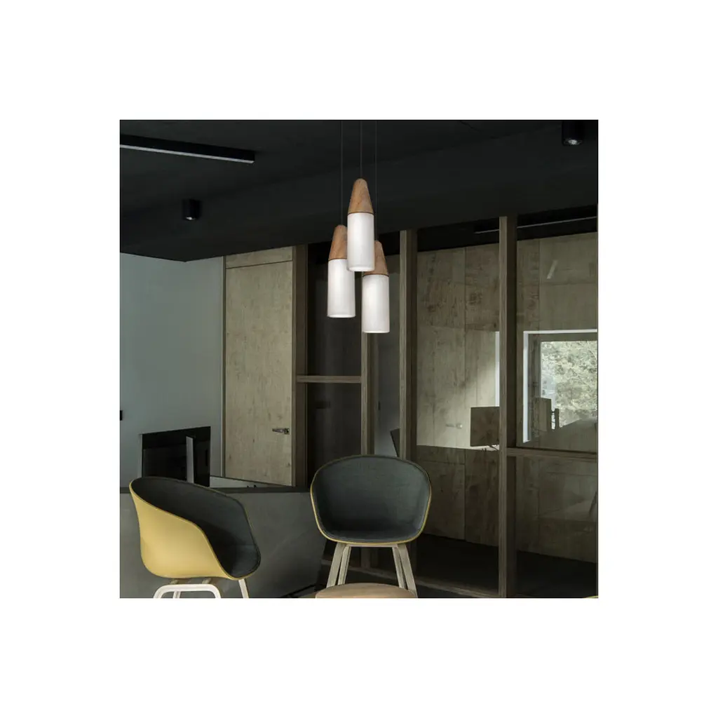 The Nini Natural Pendant beautifully melds wood and European glass, with the top conical wood cap turned from real Ash by hand and then clear coated. The glass cylinder is produced from triple layer opal for softly diffusing the light source, complementing the warmth of the wood sublimely. The cord pendant fixture is equipped with a 10' SVT cordset and an low profile flat monopoint canopy. These stylish and functional luminaries are offered in a beautiful brushed Bronze finish.