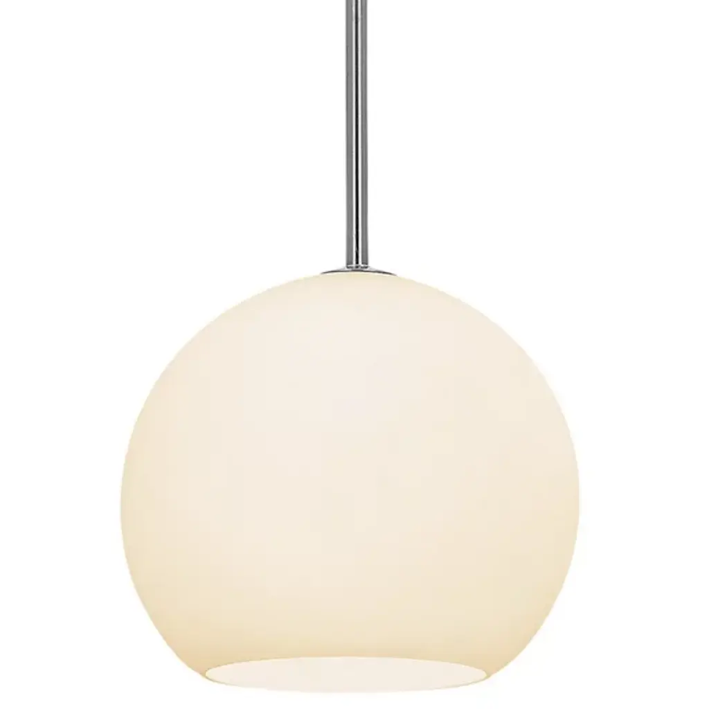Mimicking the chemical element, the Access Lighting Nitrogen Pendant floats like an electron, its opal glass shade providing a beautiful orb of visual energy. Offered in three sizes, the Nitrogen is especially unique when several hang together at varying heights. Adaptable for sloped ceilings.
