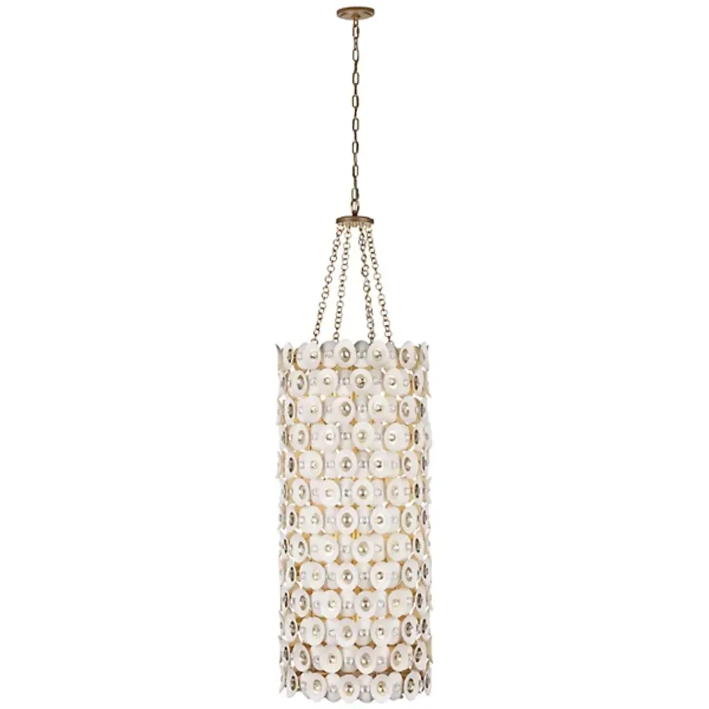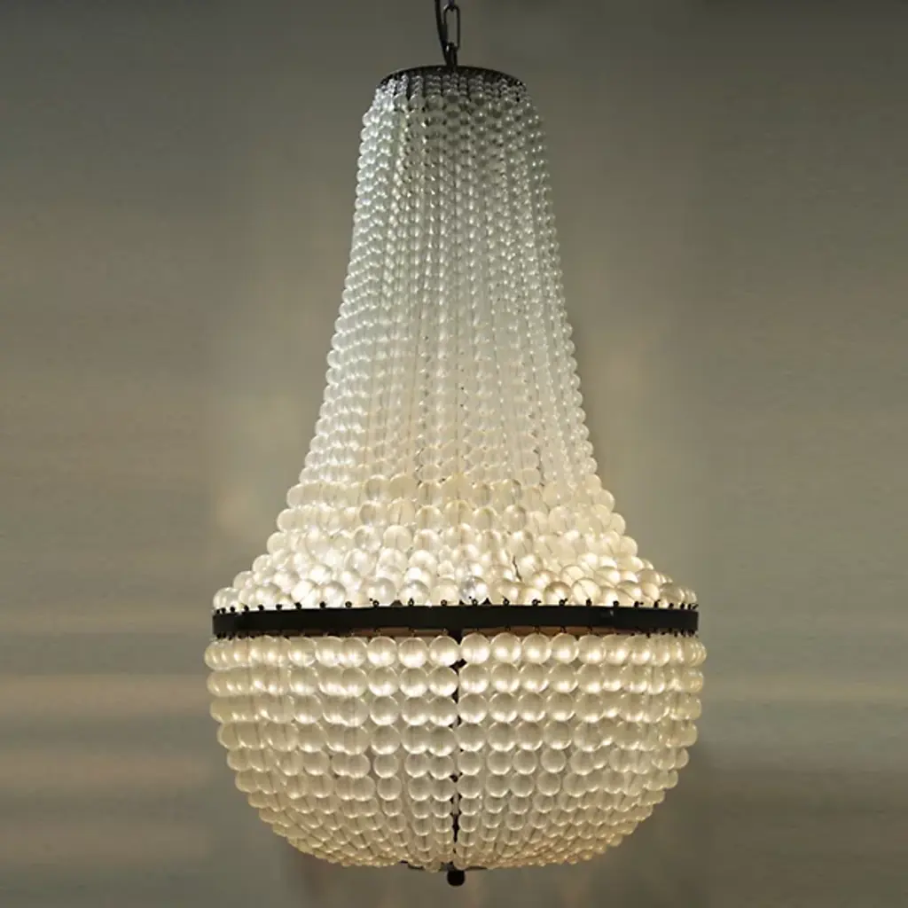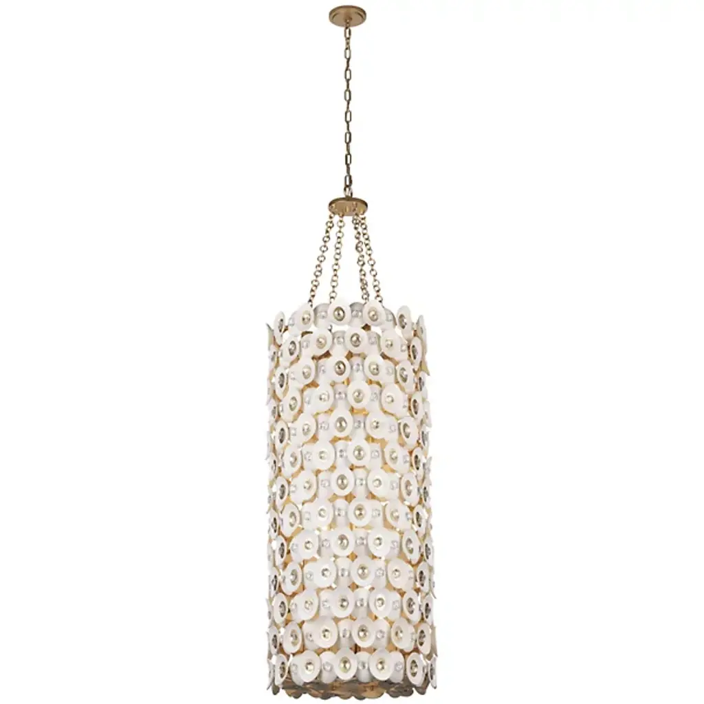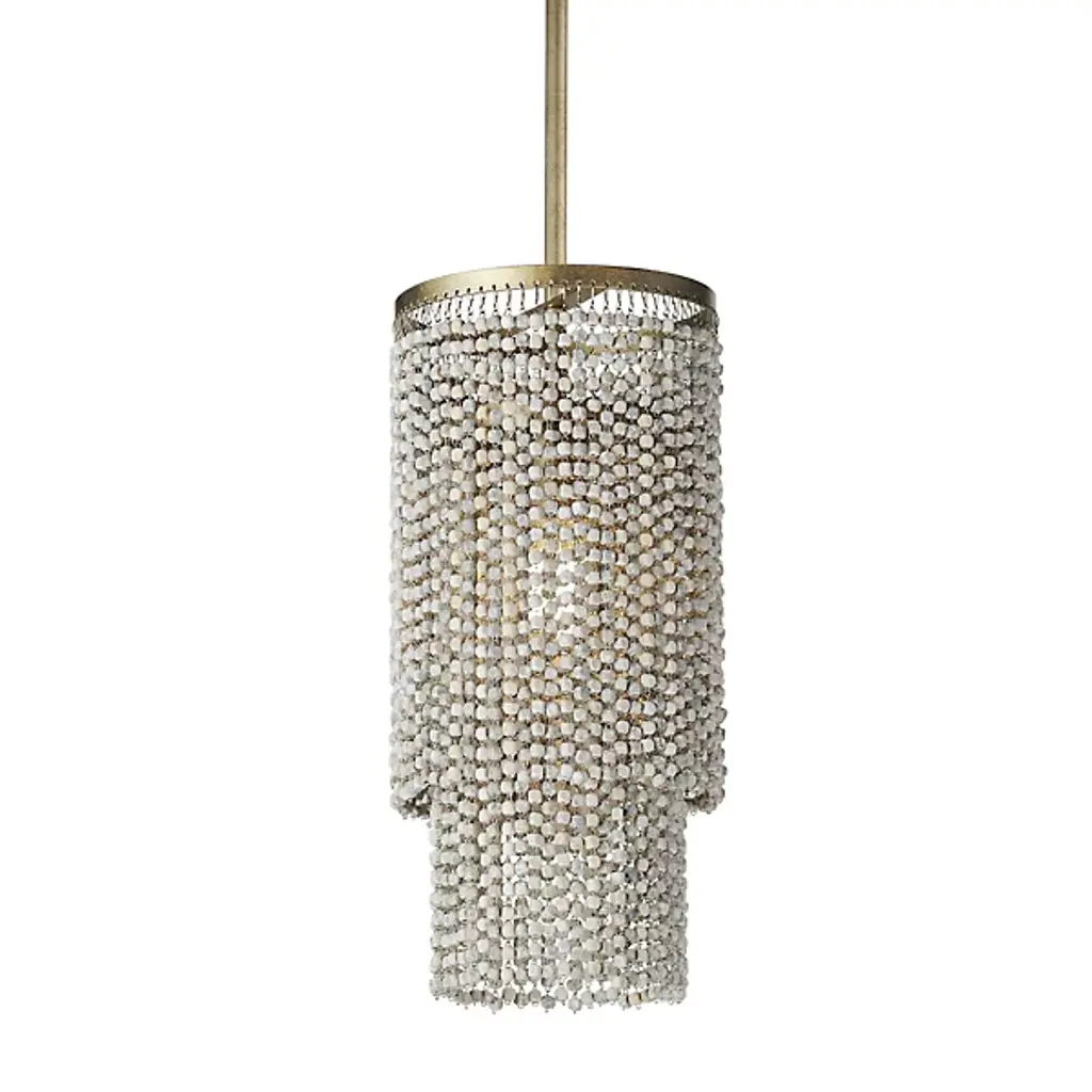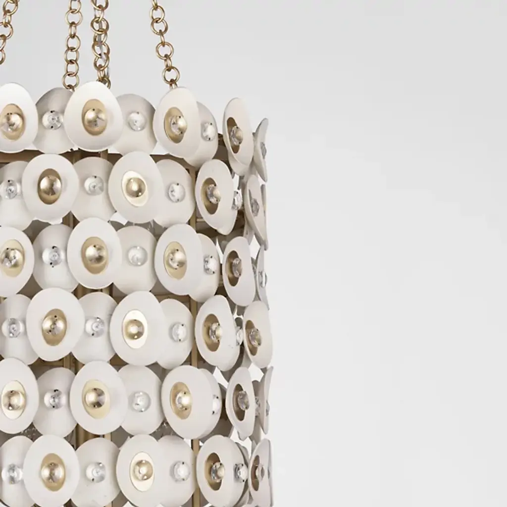The Niu Pendant from Metro Lighting combines coconut shell discs with crystal accents in a cylindrical arrangement. Each disc is precisely positioned to maximize light diffusion while maintaining structural harmony. Chain-suspended steel framework provides support for the naturally sourced materials. The crystals catch and reflect light between the organic elements, adding sparkle to the overall effect. This pendant proves that sustainable materials can be transformed into sophisticated lighting solutions without compromising functionality.