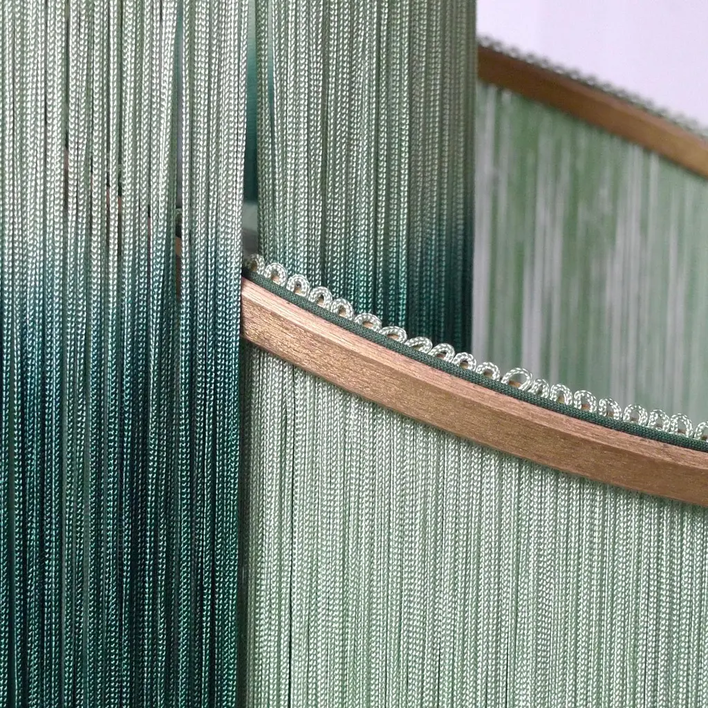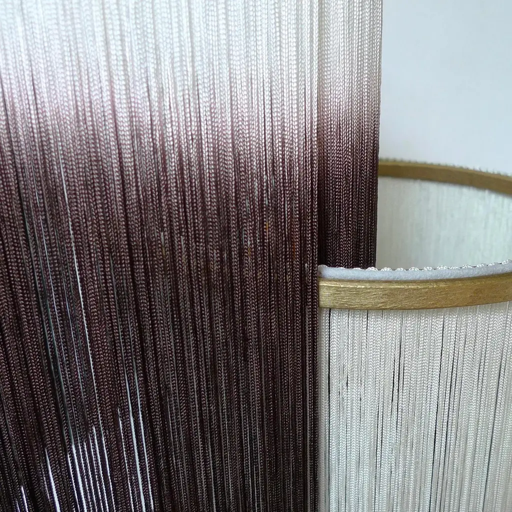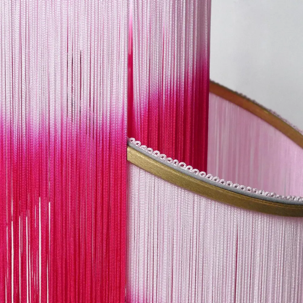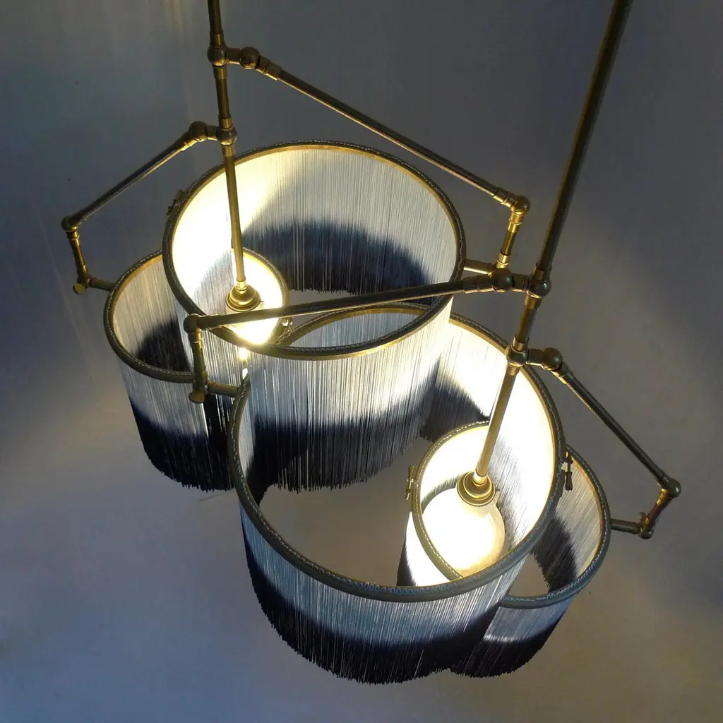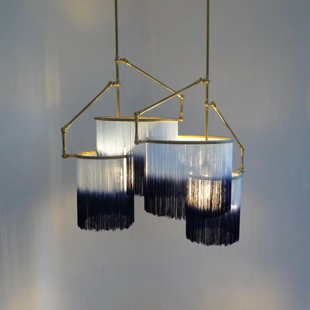 No. 31 C pendant lamp by Sander BottingaDimensions: W 68 x D 44 x H 50 cm.Materials: brass, leather, wood. Deep dyed color fringes in viscose.Also available in dark yellow and light yellow, green and light green, blue and light blue, reddish pink and light pink, brown and off white.Custom size for the height from ceiling to bottom. Only for Led light bulbs. This composition is made out of 2 pendants and can be extended with more pieces together in a length, wide or height composition. The design artwork is meticulously handcrafted in a limited series, sometimes in corporation with small artisan workshops.All our lamps can be wired according to each country. If sold to the USA it will be wired for the USA for instance. Sander BottingaObject / Interior DesignerI’ve always been inspired by light objects, forms, colors and authentic materials. I love to create and work with my hands.After working for various interior and design companies in the last 20 years, I have now designed my own collection of interior objects.All the objects are meticulously handcrafted in a limited series, sometimes in corporation with small artisan workshops.This results in unique handmade objects with their own identity. There is also the option to order custom-made objects – for both projects and personal use.