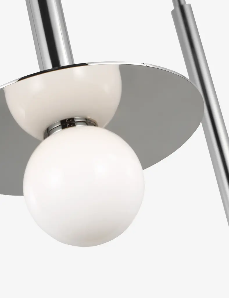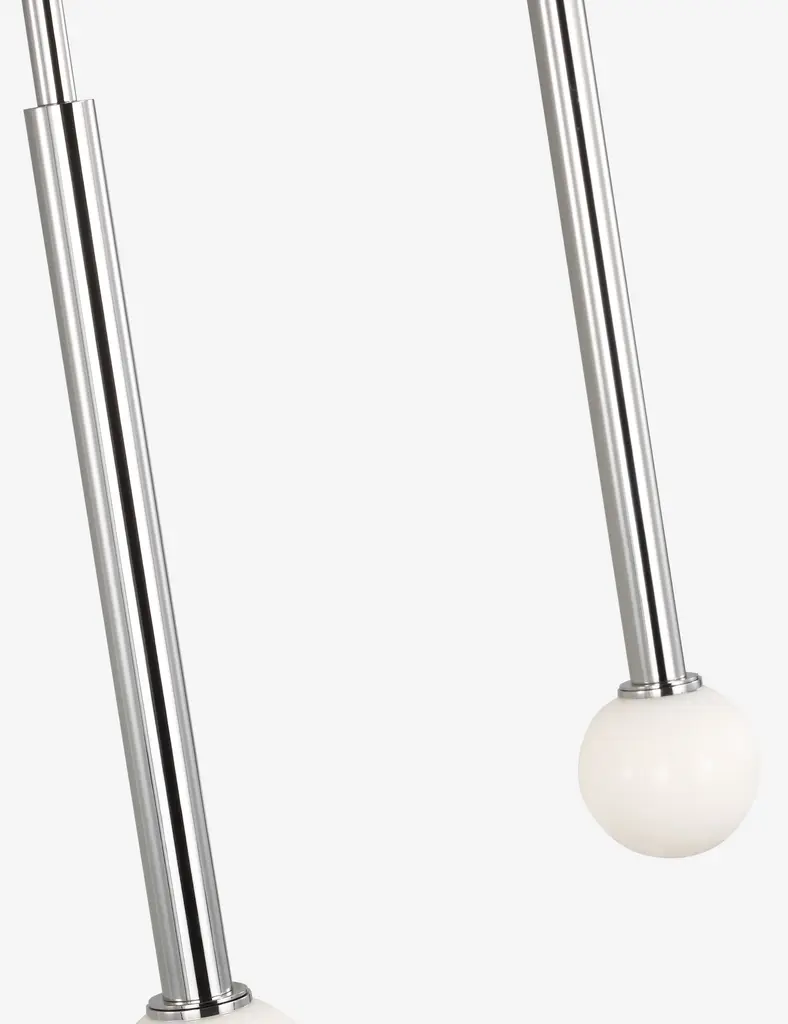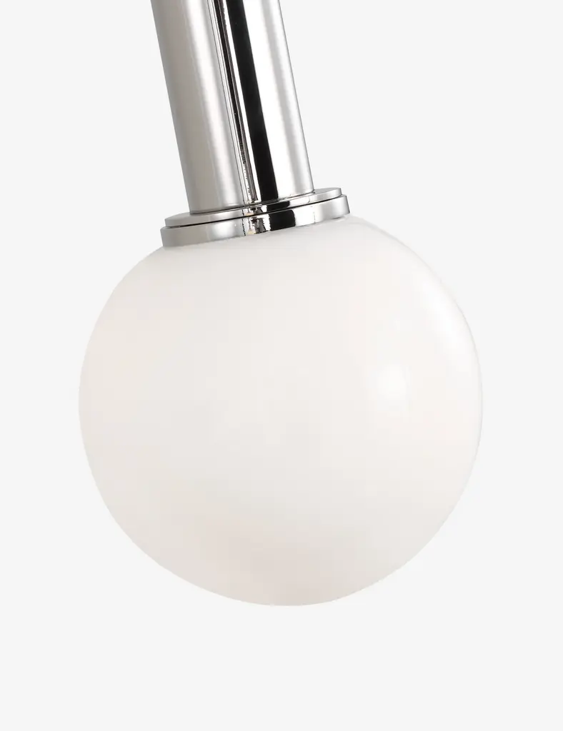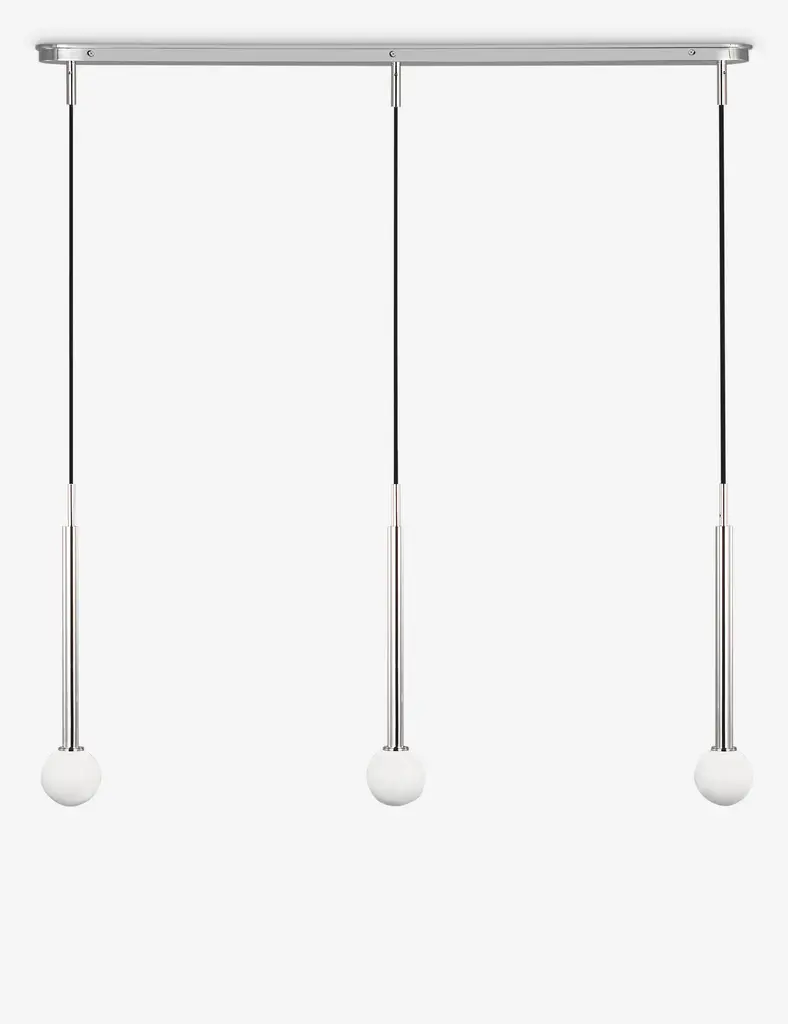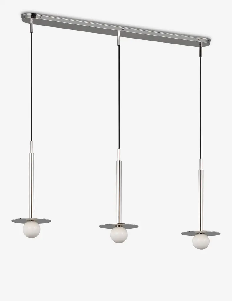 Kelly Wearstler possesses an intuitive eye for finding harmony through contrast, creating richly layered spaces and thoroughly refined elements for the home. The renowned designer brings her evocative style to lighting with the Nodes linear pendant. This sleek hanging light strikes statement appeal overhead with milk glass globes and removable disk canopies.