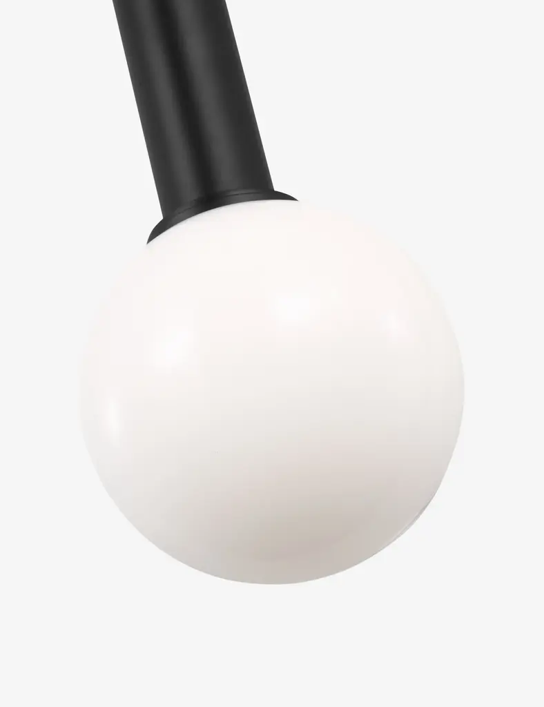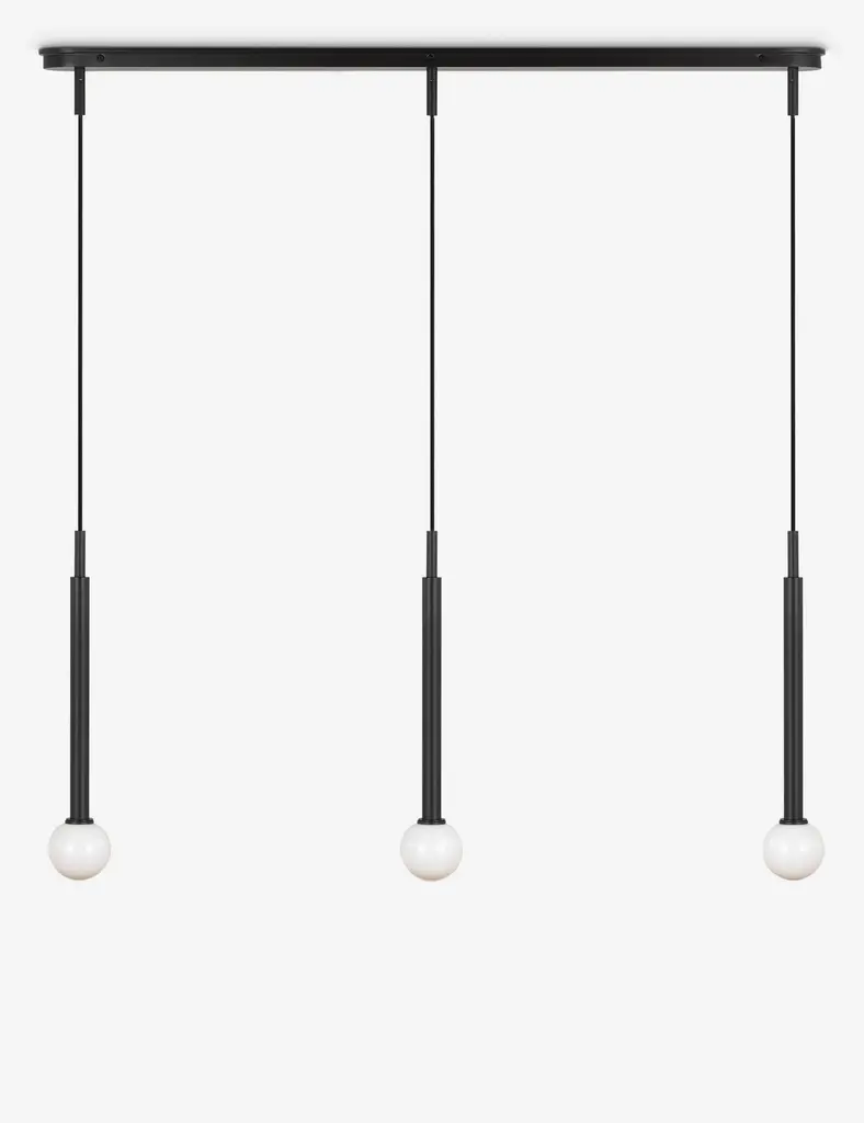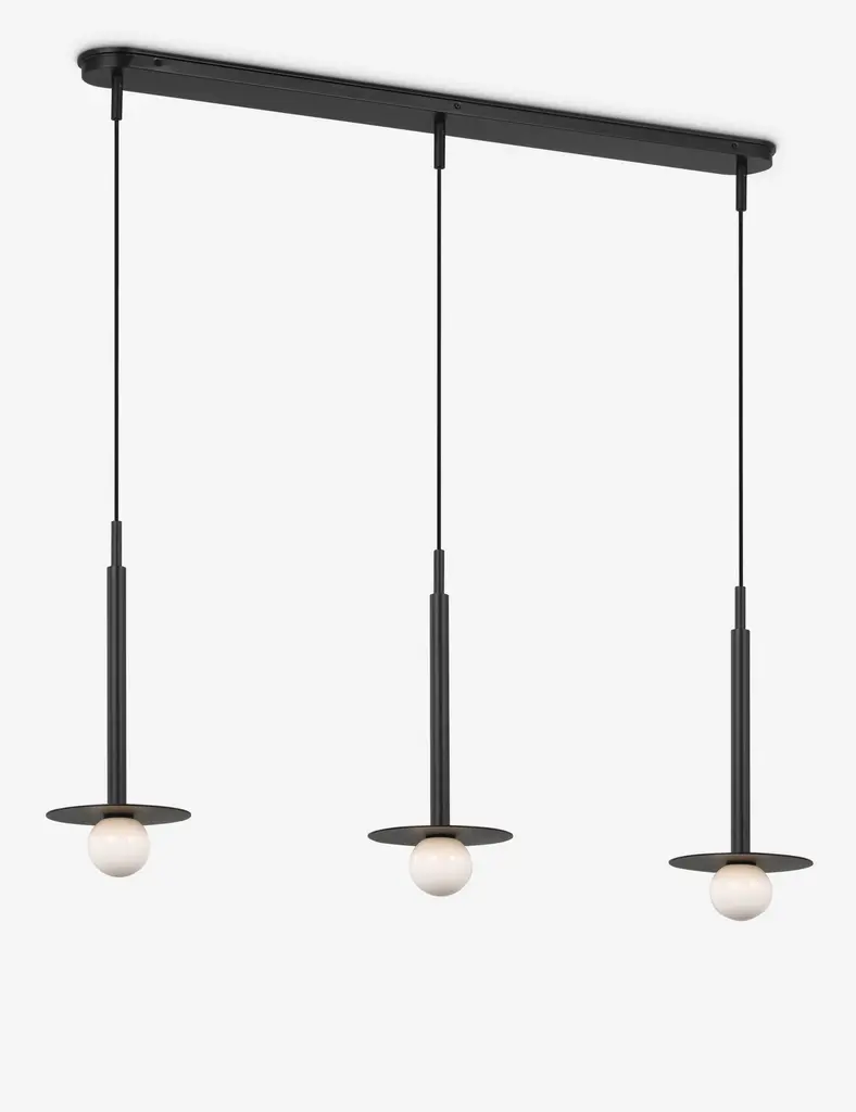 Kelly Wearstler possesses an intuitive eye for finding harmony through contrast, creating richly layered spaces and thoroughly refined elements for the home. The renowned designer brings her evocative style to lighting with the Nodes linear pendant. This sleek hanging light strikes statement appeal overhead with milk glass globes and removable disk canopies.