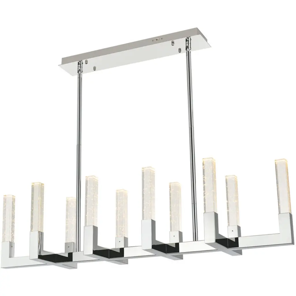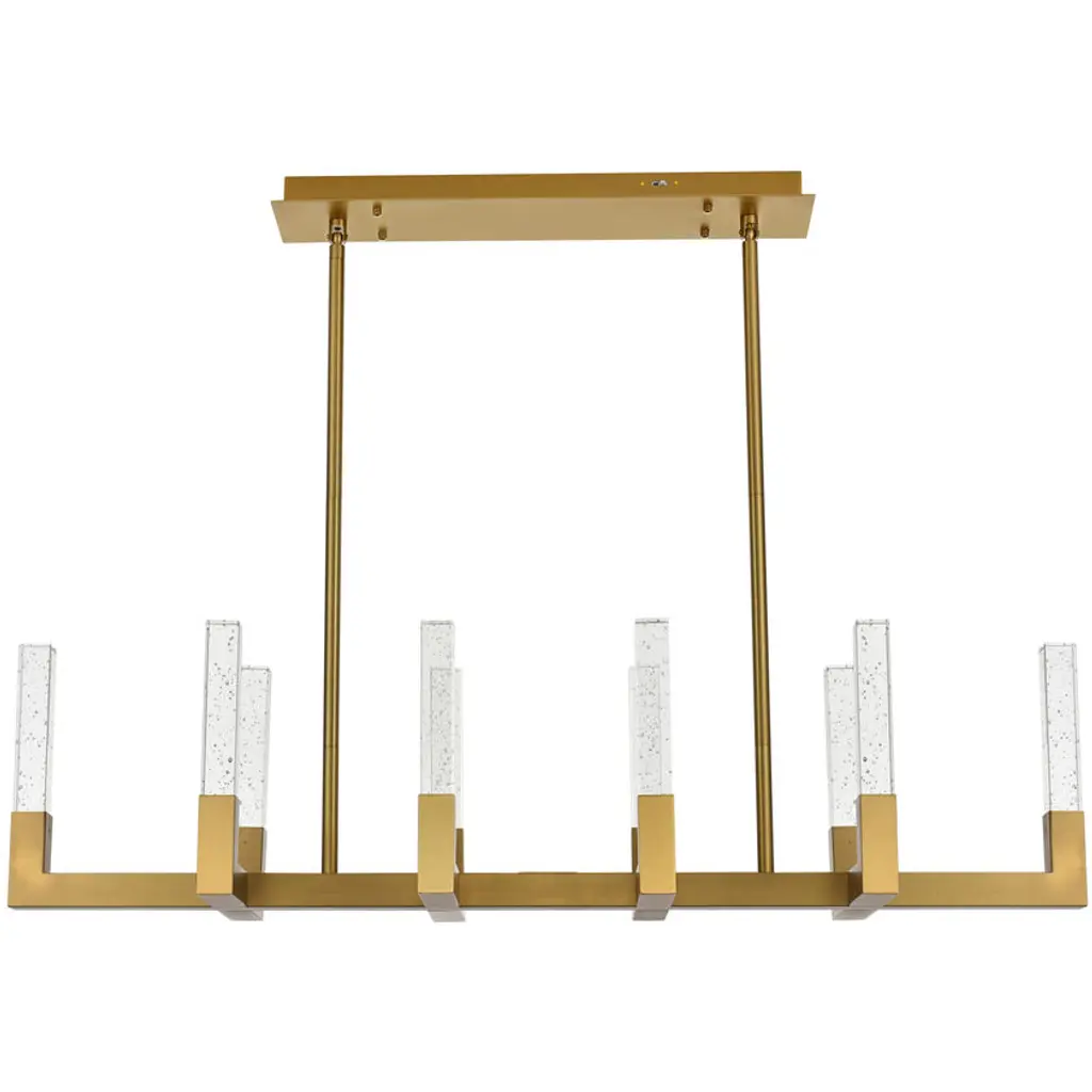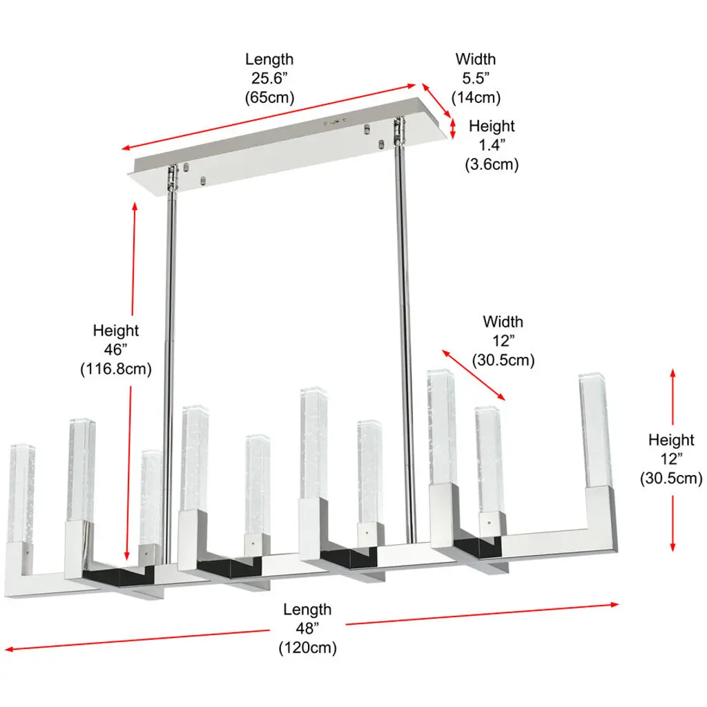 Introducing the Noemi 48-inch pendantan extraordinary blend of contemporary design and industrial elegance. With its chic linear silhouette, this pendant light adds a modern flair to your decor. The seeded glass crystal rods create a captivating play of light, enhancing your space with timeless elegance. Crafted from enduring iron and ETL certified for safety, the Noemi ensures a perfect balance of enduring quality and brilliant illumination with energy-efficient LED lights. Customize your ambiance effortlessly with the adjustable color temperature feature. Whether you seek a relaxed evening glow, a neutral and focused atmosphere, or a vibrant and energizing radiance, our chandelier provides the flexibility to cater to your preferences. Elevate your space with personalized illumination, creating the perfect setting for every moment. The Noemi 48-inch pendant is a statement of sophistication and functionality for your home.