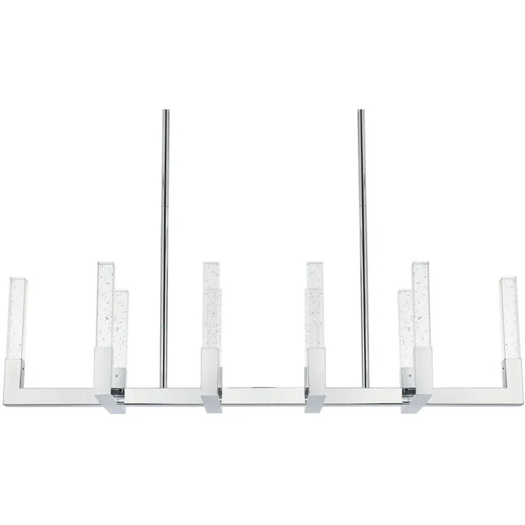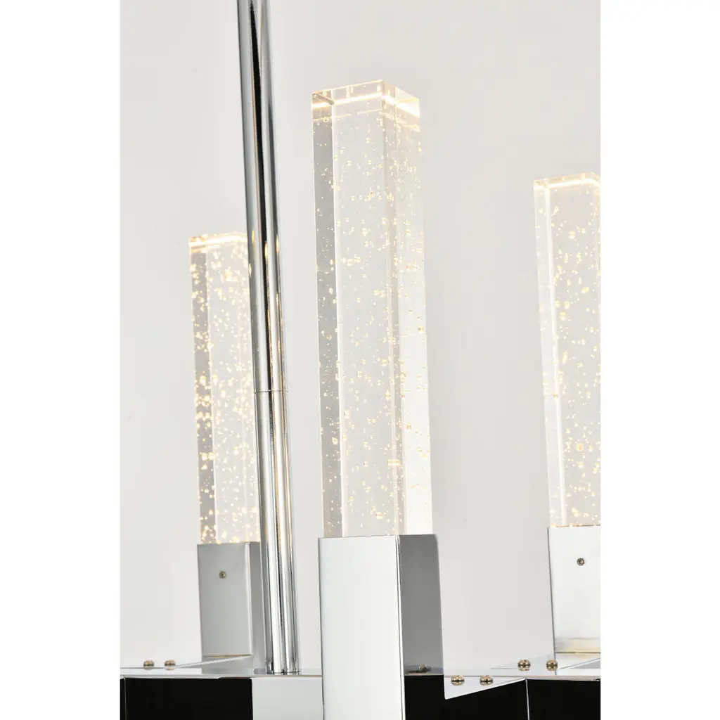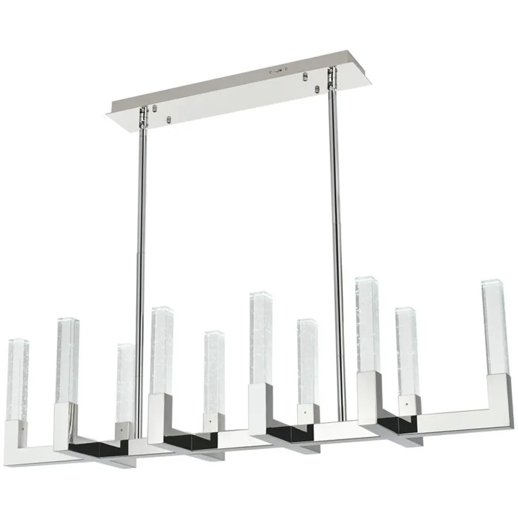 Introducing the Noemi 48-inch pendantan extraordinary blend of contemporary design and industrial elegance. With its chic linear silhouette, this pendant light adds a modern flair to your decor. The seeded glass crystal rods create a captivating play of light, enhancing your space with timeless elegance. Crafted from enduring iron and ETL certified for safety, the Noemi ensures a perfect balance of enduring quality and brilliant illumination with energy-efficient LED lights. Customize your ambiance effortlessly with the adjustable color temperature feature. Whether you seek a relaxed evening glow, a neutral and focused atmosphere, or a vibrant and energizing radiance, our chandelier provides the flexibility to cater to your preferences. Elevate your space with personalized illumination, creating the perfect setting for every moment. The Noemi 48-inch pendant is a statement of sophistication and functionality for your home.