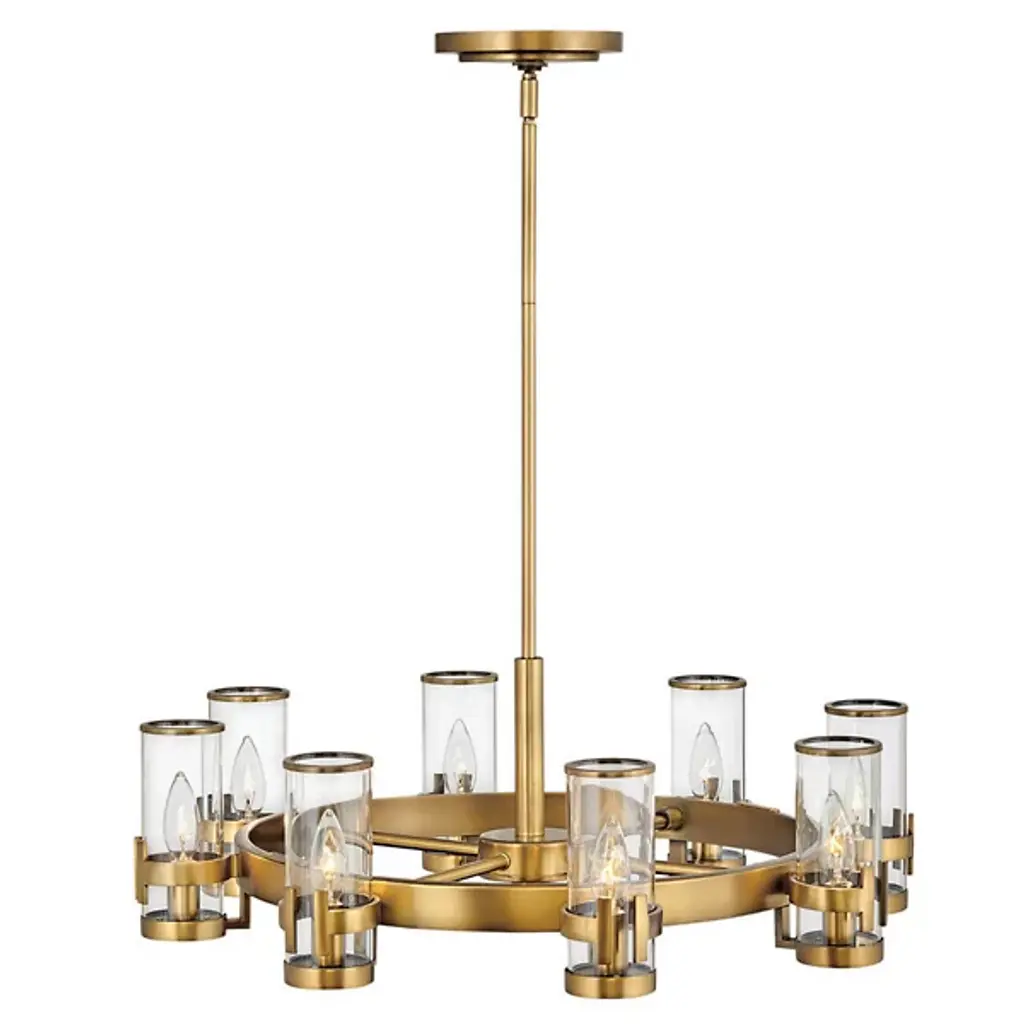 Part of the New Traditional Collection. "Mid-century Victorian meets mid-century modern" in this contemporary take on the classic hurricane glass chandelier. Providing an innovatively fresh look on a classic, the Nola embodies New Traditional style.