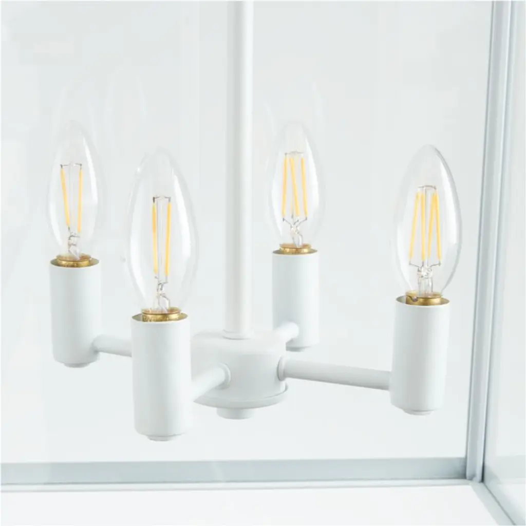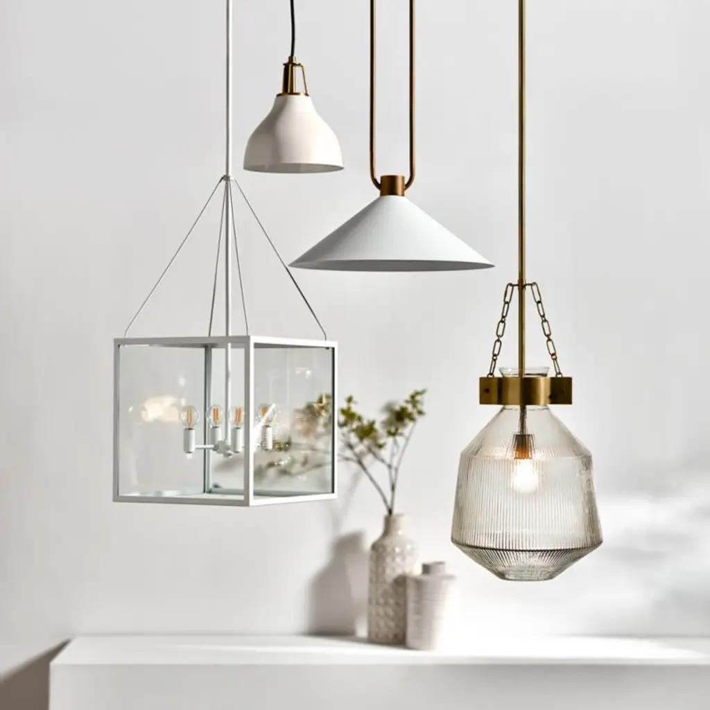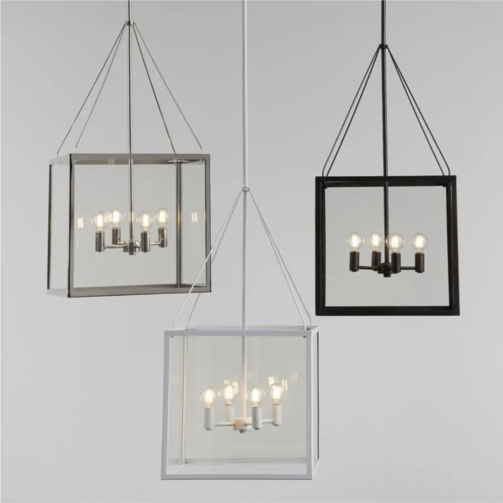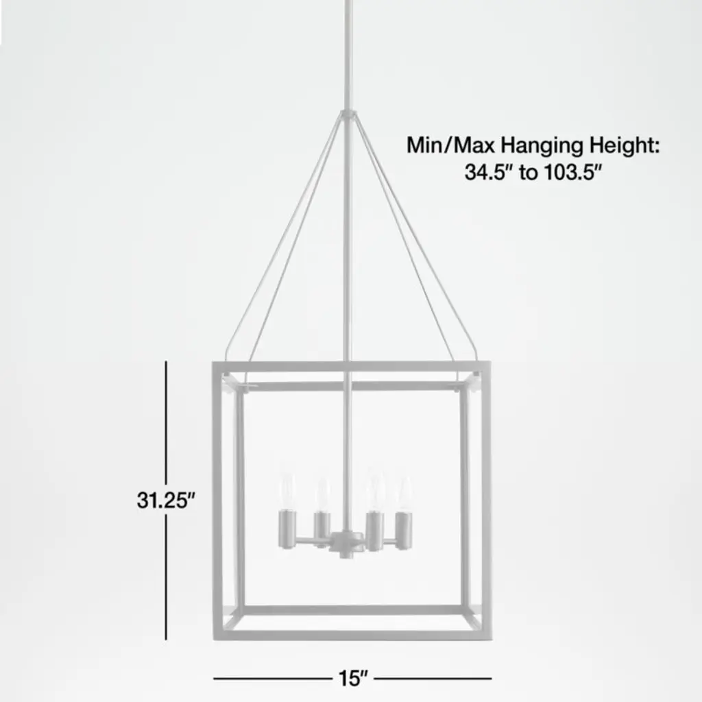 Paned in clear glass, our Nolan pendant frames a four-bulb chandelier in bright white. The crisp cube pairs with the rounded sockets and downrod for a ceiling light at once modern and traditional. Hang a single pendant over a breakfast nook, or line up multiples over a kitchen island or down a hallway. Our Nolan square white glass pendant light is a Crate & Barrel exclusive.