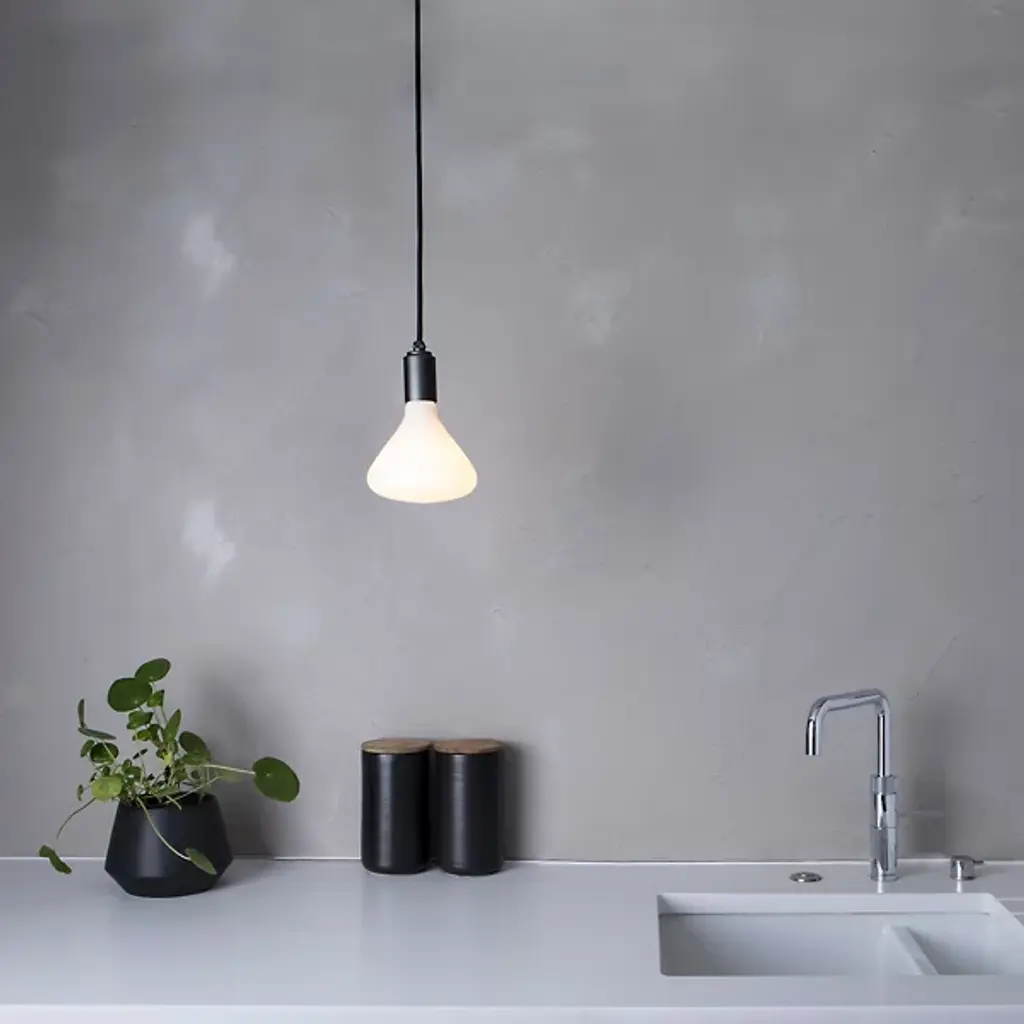 The Noma Single Pendant by Tala combines the unique, triangular silhouette of a mouth-blown glass bulb with a minimal socket and braided cord. Within this bulb, energy-efficient sources provide the warm, welcoming glow that diffuses through this simple form, infusing spaces with an elegant blend of form and function. Created to elevate the humble light bulb and bring beautiful, efficient technology into the home, this handsome pendant strikes a balance between the decorative and the practical for a bright look that makes a statement.