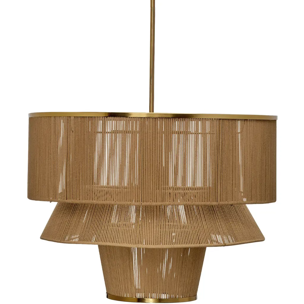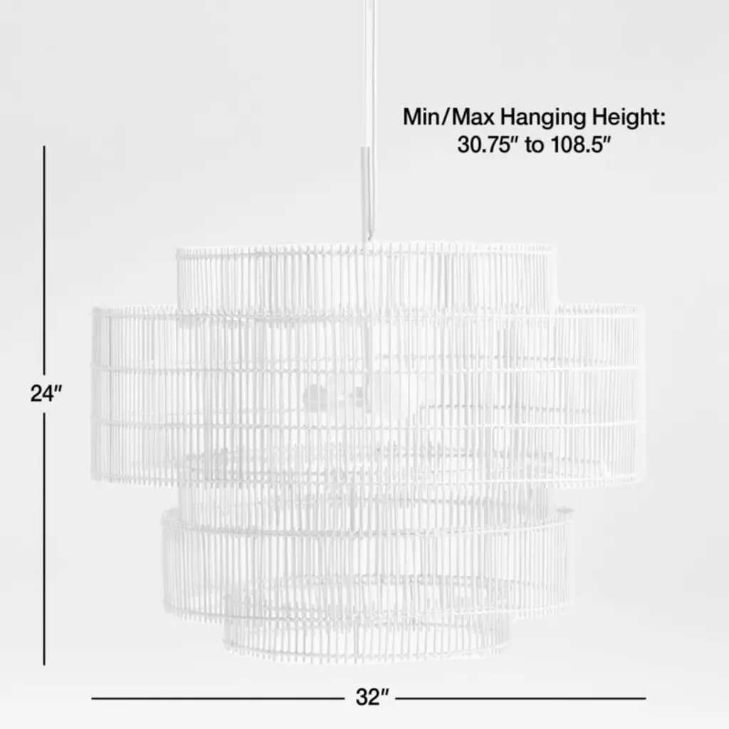 Inspired by vintage bird cages, this handwoven pendant light constructs an airy enclosure of wicker. A drum-like cylinder flanked by two smaller rings creates a sculptural enclosure for a single suspended bulb visible through the open weave of natural rattan. We love the large pendant light's breezy look as well as the soft illumination and intriguing shadows it provides over a dining room table, kitchen grouping or living room arrangement.This piece is part of our exclusive collaboration with star designer Leanne Ford. Curated and crafted around the world, the collection brings Leanne's cool, effortless vibe home to you.