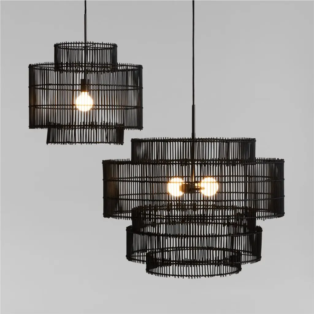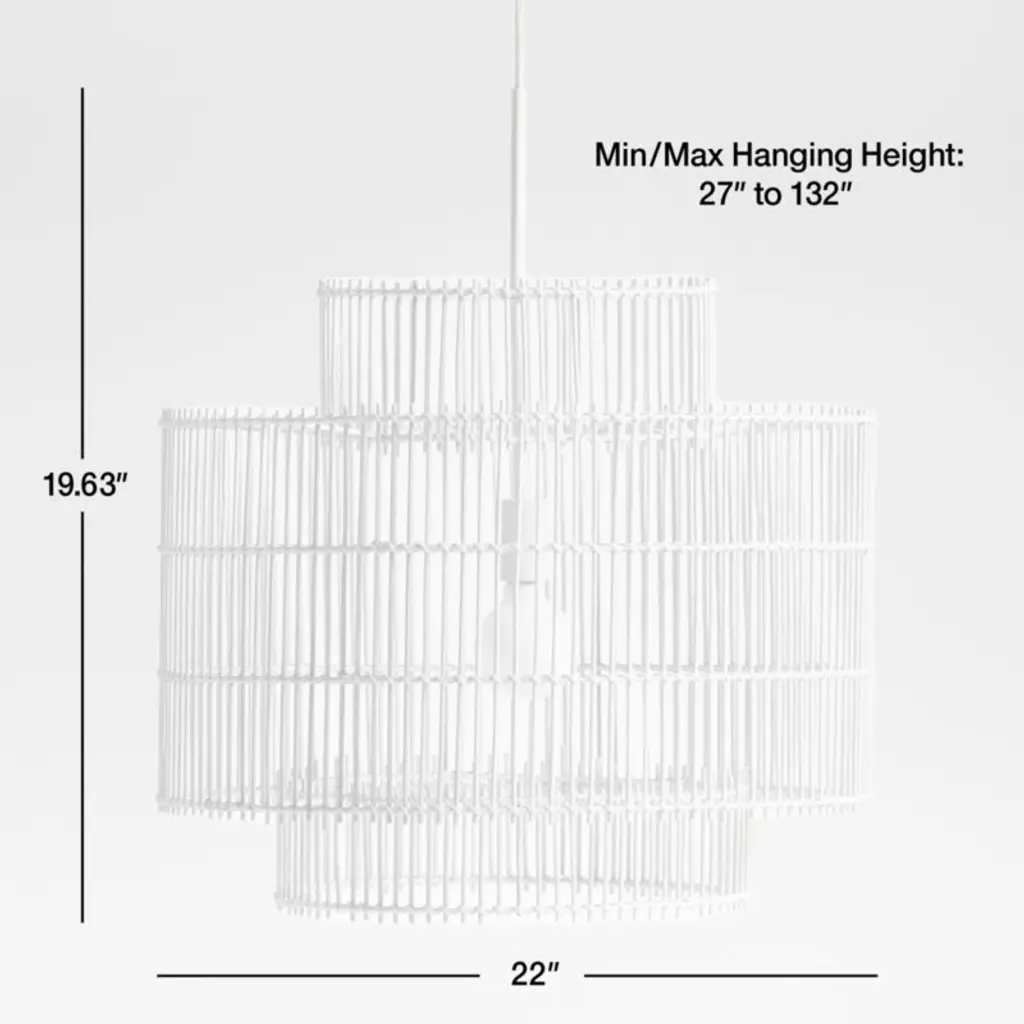 Inspired by vintage bird cages, this handwoven pendant light constructs an airy enclosure of wicker. A drum-like cylinder flanked by two smaller rings creates a sculptural enclosure for a single suspended bulb visible through the open weave of natural rattan. We love the small pendant light's breezy look as well as the soft illumination and intriguing shadows it provides over a dining room table, kitchen grouping or living room arrangement.This piece is part of our exclusive collaboration with star designer Leanne Ford. Curated and crafted around the world, the collection brings Leanne's cool, effortless vibe home to you.