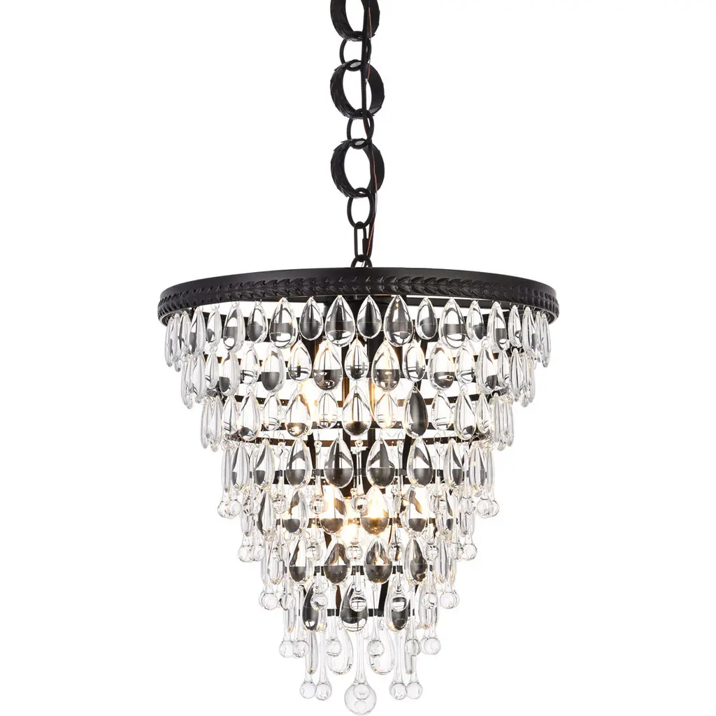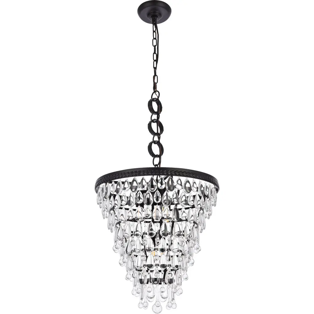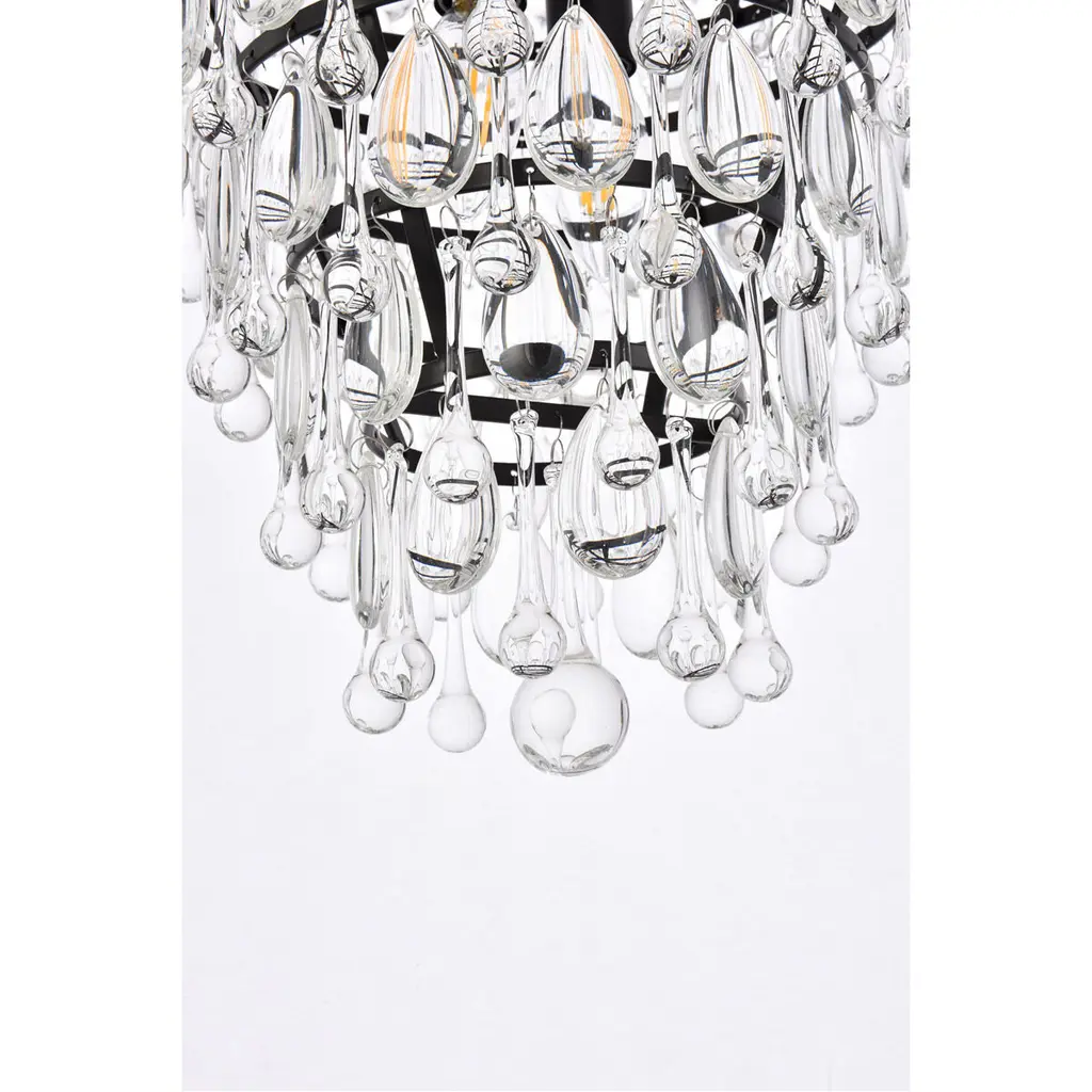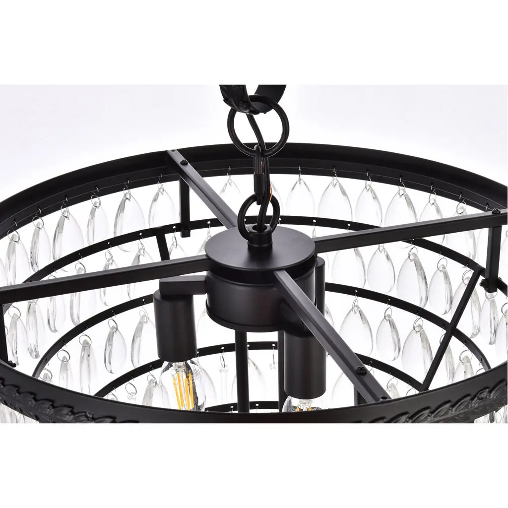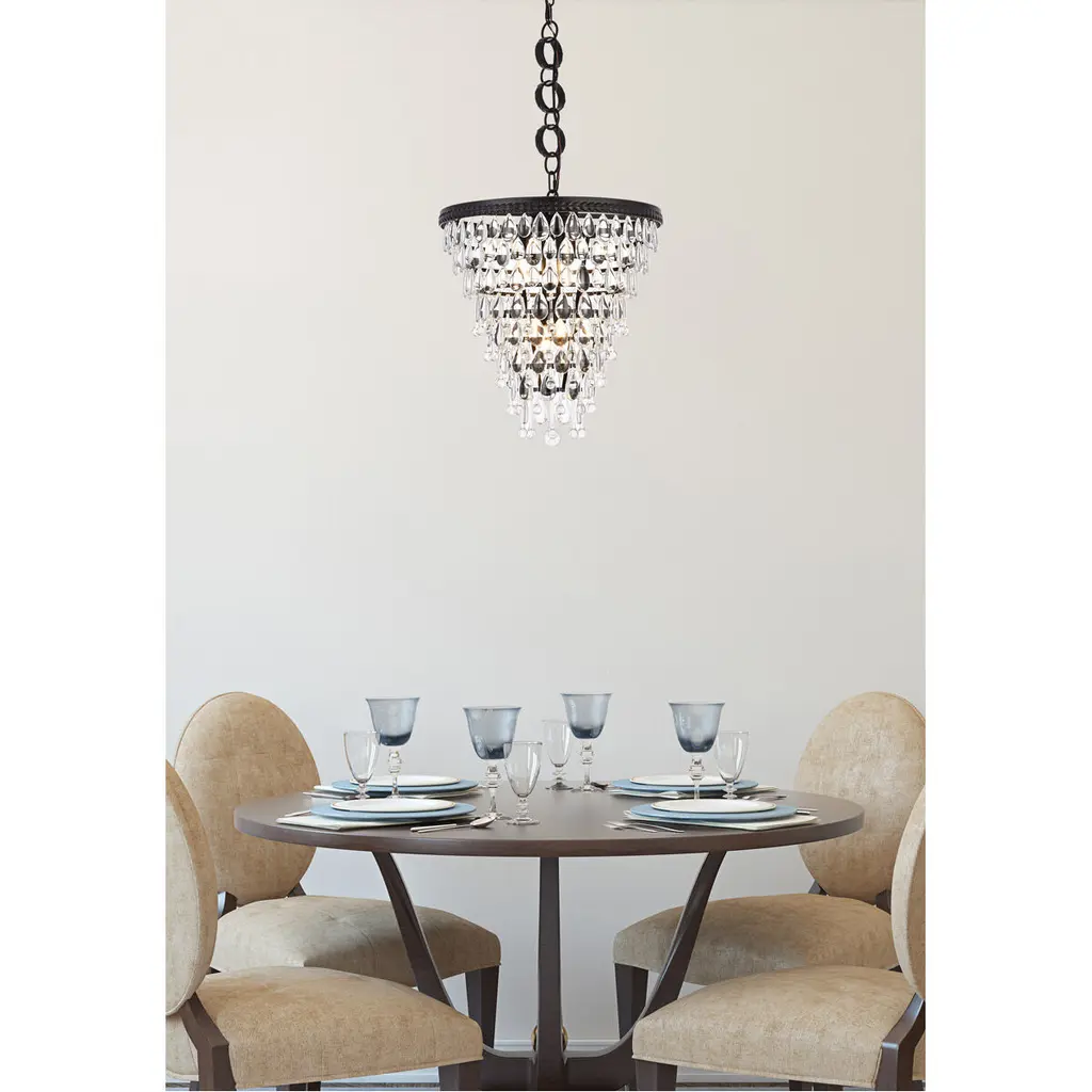 Like the sun setting on a frozen lake, this collection shimmers with tiers of icy crystals reflecting the soft glow of the candelabras. True to its Nordic namesake, the cascades of royal-cut clear crystals complement the etched black finished frame. Suspended by an elegantly looped chain that draws the eye to the cool sheen below.