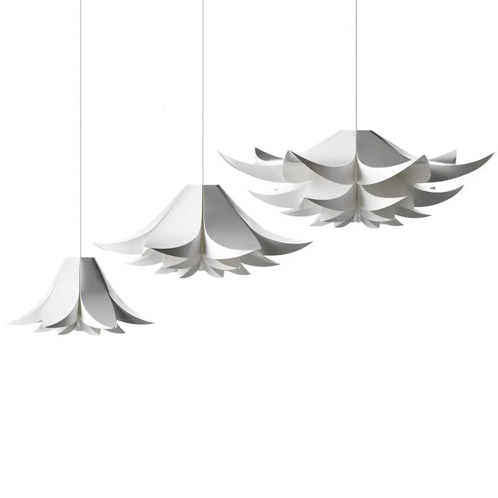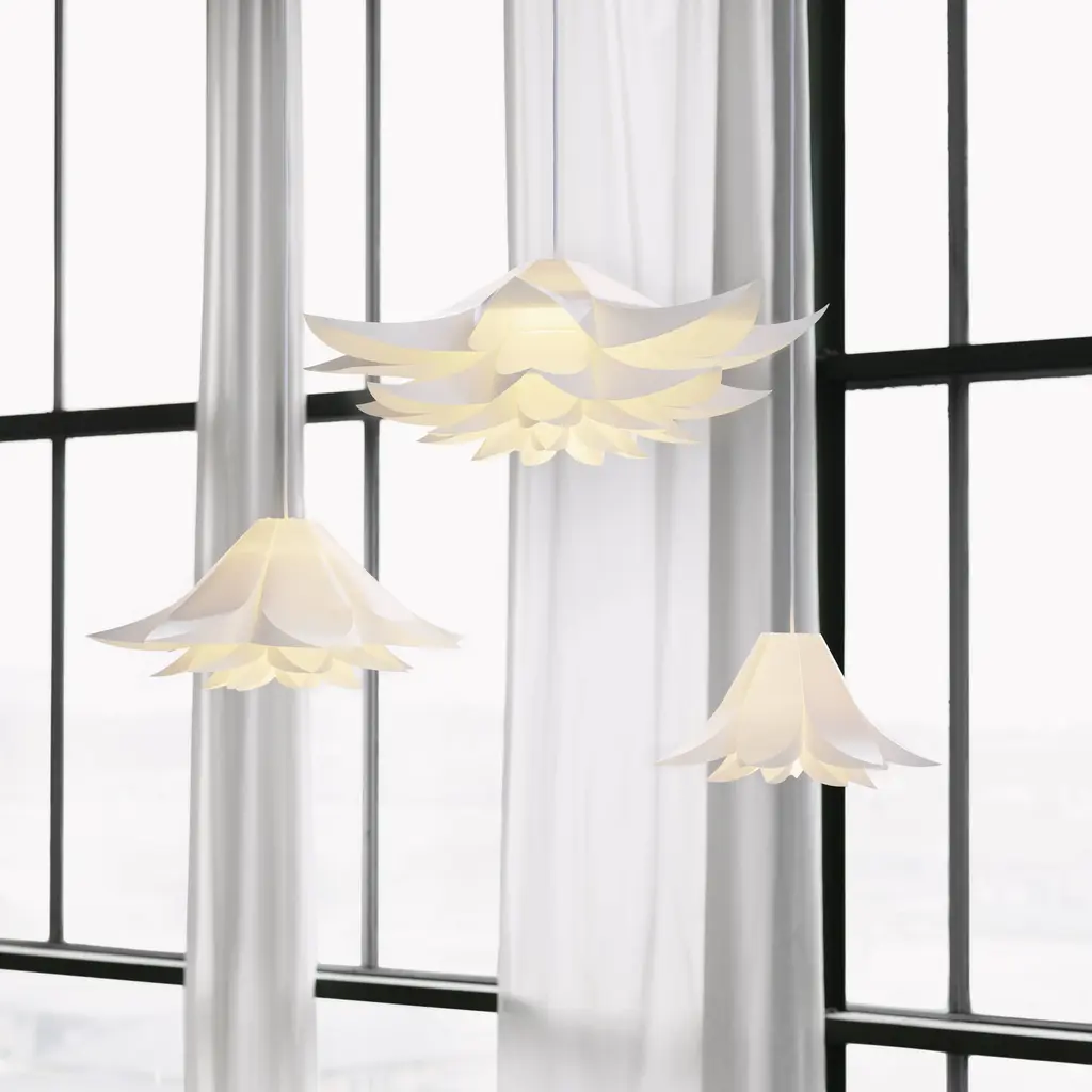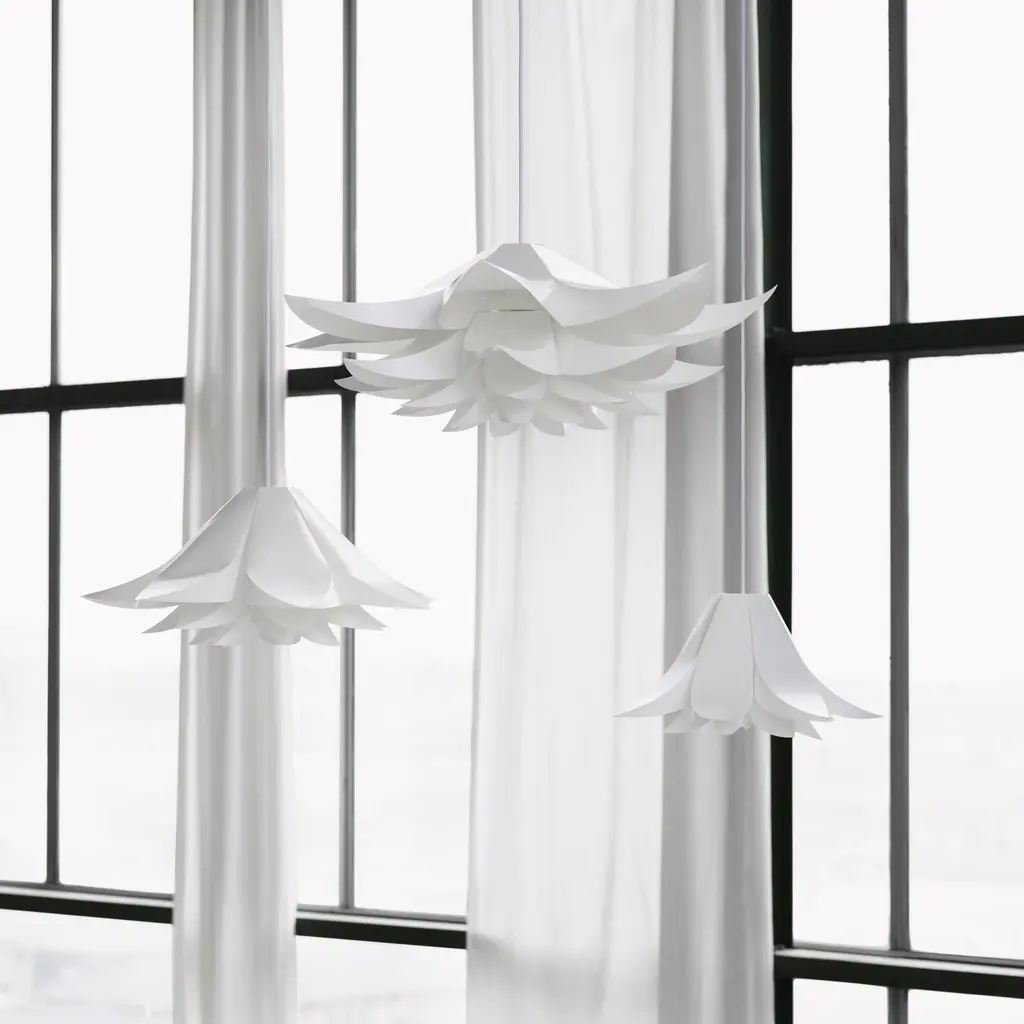 Danish designer Simon Karkov’s multilayered pendant is inspired by water lilies and the world of nature. Norm 06 follows the Nordic design tradition of lamp shades that shield the bulb, thus spreading a soft glow. Easy to assemble without the need for any tools or glue, the shade is made of a non-flammable special plastic material.