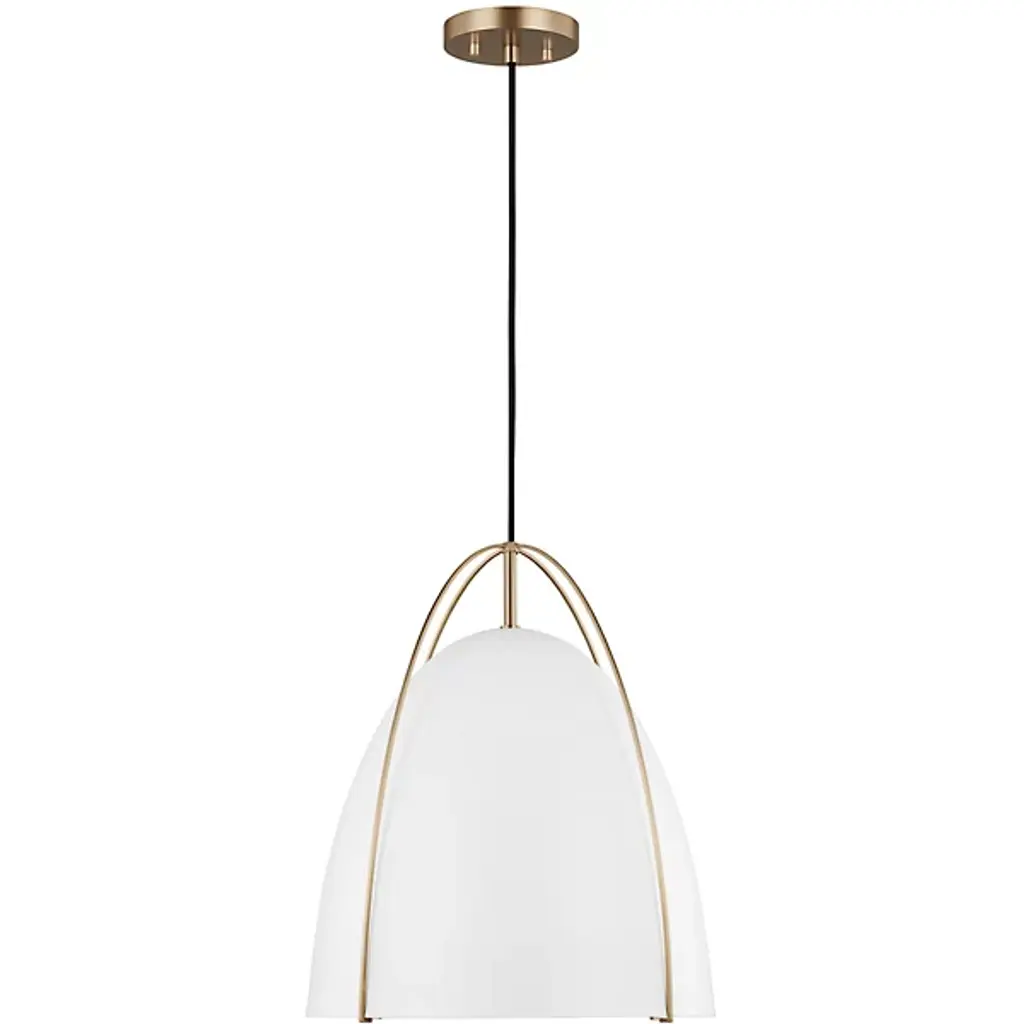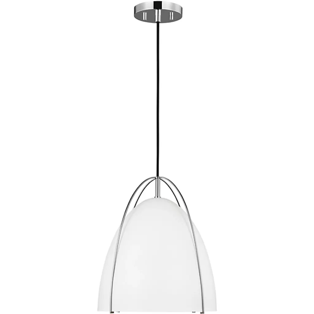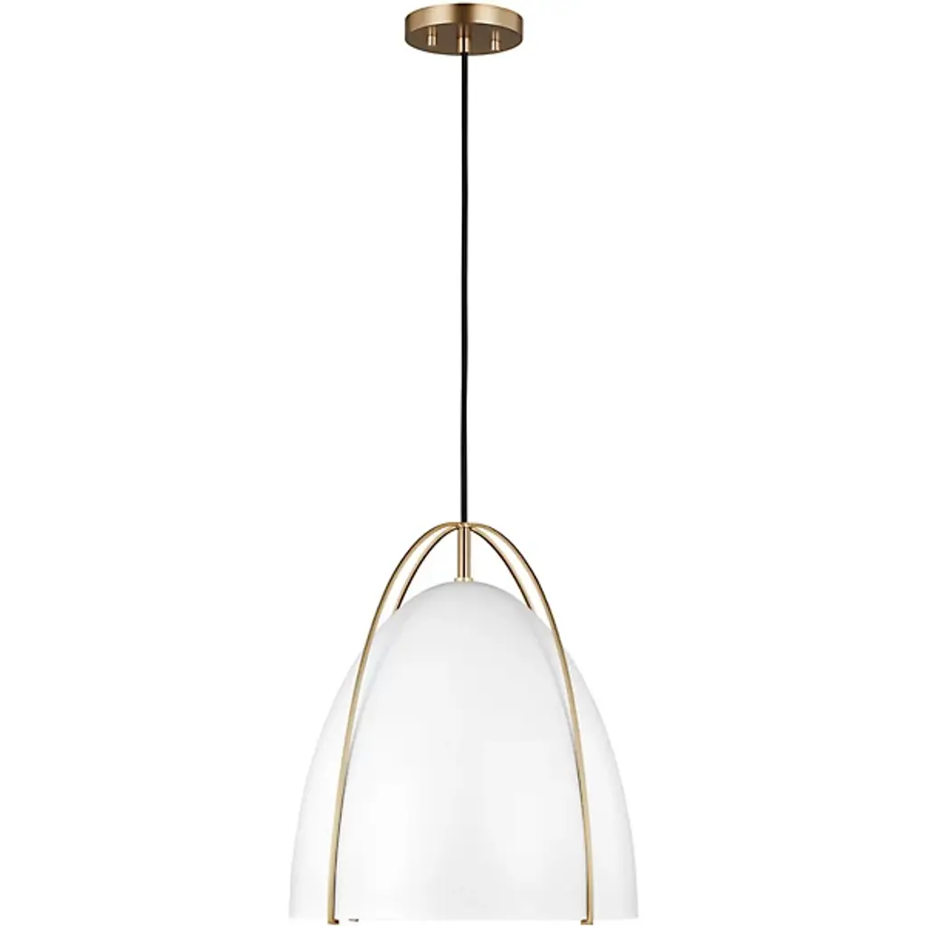 Lend any of your indoor spaces an elegant accompaniment with the Norman Pendant from Visual Comfort Studio, formerly known as Sea Gull Lighting, A sleek mix of modern style and contemporary practicality, it is anchored to the ceiling by a small disc canopy that dispatches a sleek support down to a single socket below. The wet-listed lamping is screened from the sides by a metal goblet shade retained from above by four smooth steel branches that contrast with its matte surface, casting a focused pool of light below.