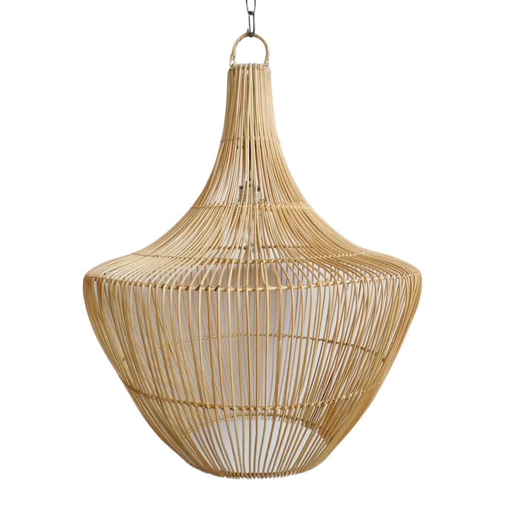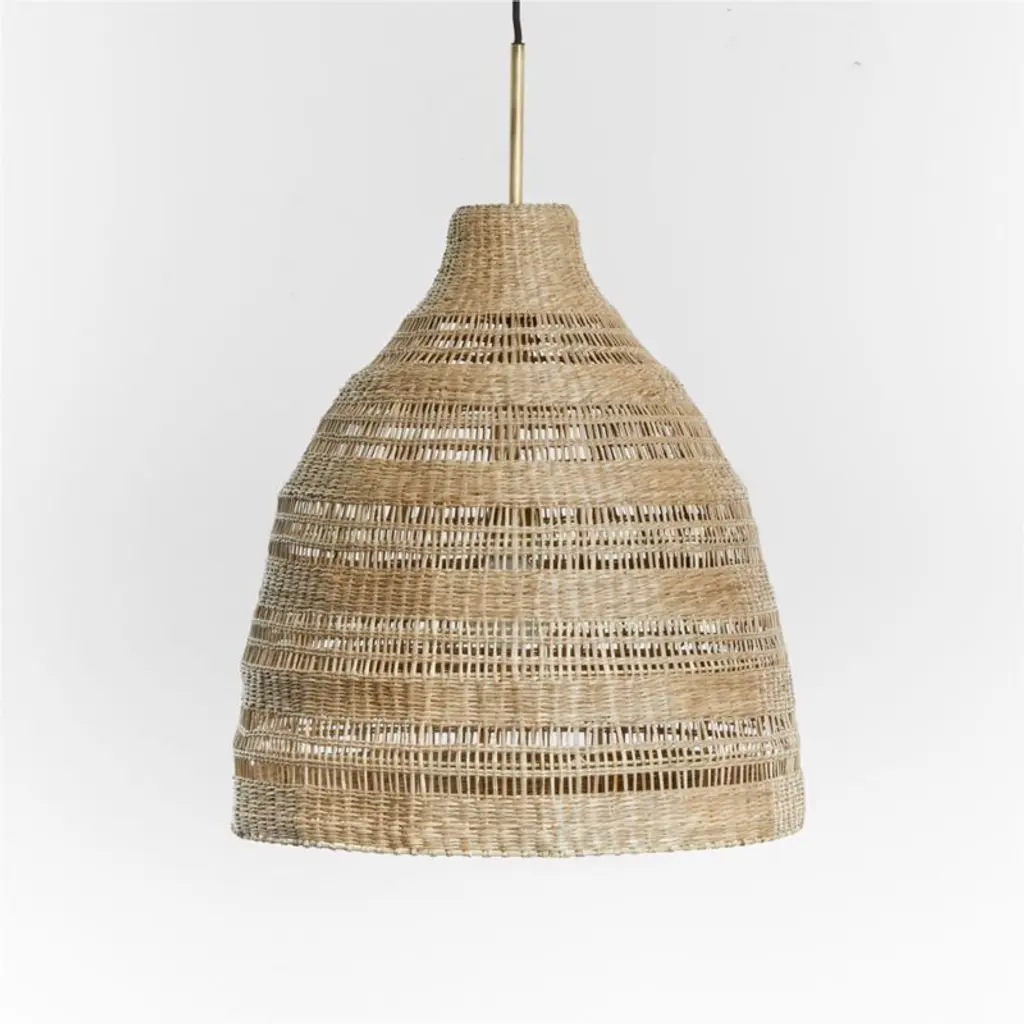 Nossa updates pendant lighting with a breezy weave of natural seagrass. Suspended over a dining room table, kitchen island or sectional grouping, the shade casts a warm and dappled glow through its open weave. The striped effect achieved by the tight and open weaving techniques adds a hint of pattern to this coastal-inspired pendant light available at Crate & Barrel only.
