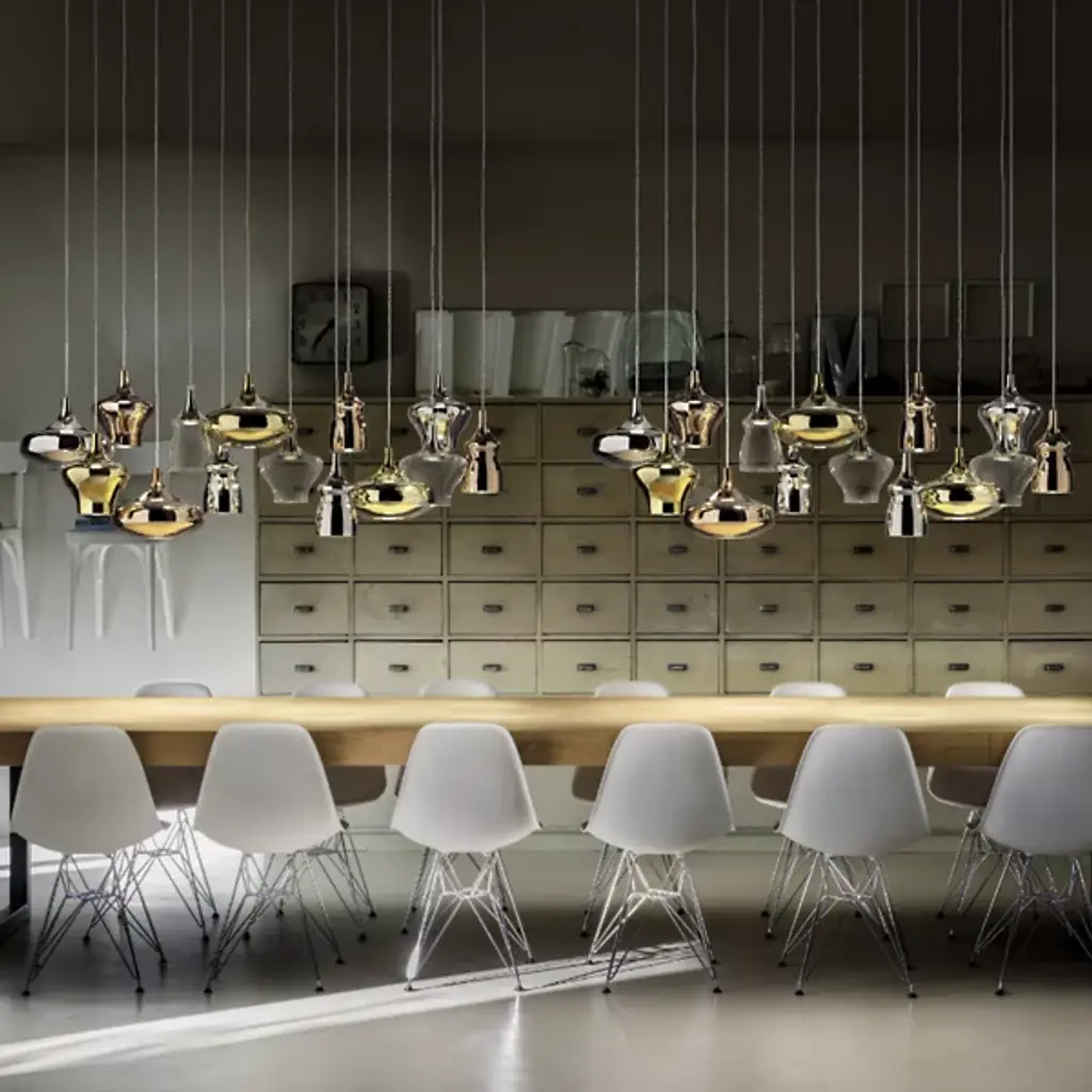 The LODES Nostalgia Small LED Pendant, designed by Dima Loginoff, is a hand-crafted piece of hand-blown glass, exhibiting qualities in both luxury and sophisticated LED technology. The chrome metal structure holds the LED light source, which produces a warm light that becomes slightly visible once lit. The reflective element of the glass remains constant, yet changes with the advent of the light that peers through the glass.