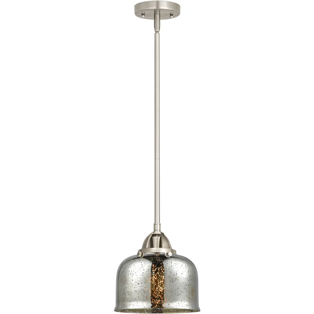 Nouveau 2 Bell 1 Light 8 Inch Black Antique Brass Mini Pendant Ceiling Light In Incandescent, Silver Plated Mercury