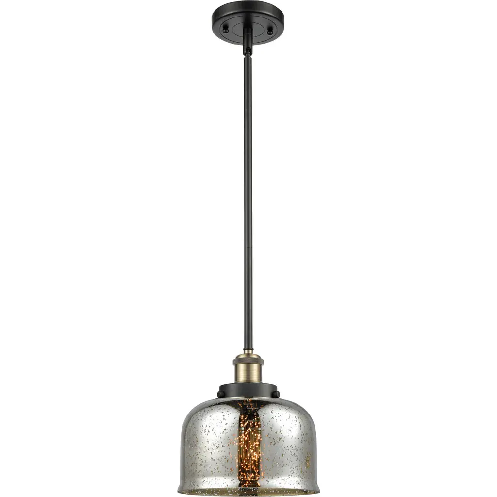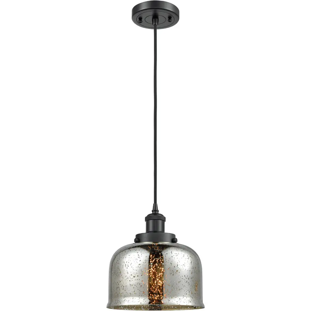 Nouveau 2 Bell 1 Light 8 Inch Matte Black Mini Pendant Ceiling Light In Incandescent, Silver Plated Mercury