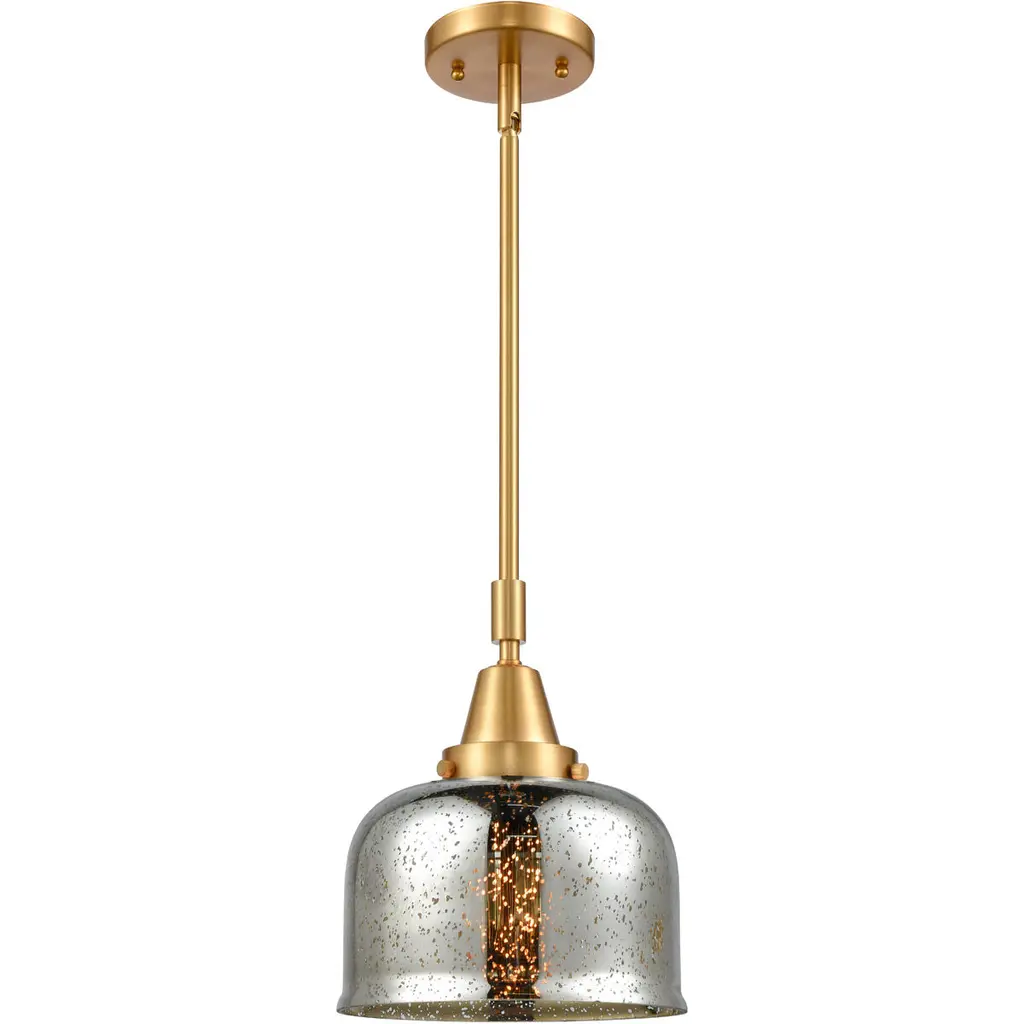 Nouveau 2 Bell 1 Light 8 Inch Satin Gold Mini Pendant Ceiling Light In Incandescent, Silver Plated Mercury