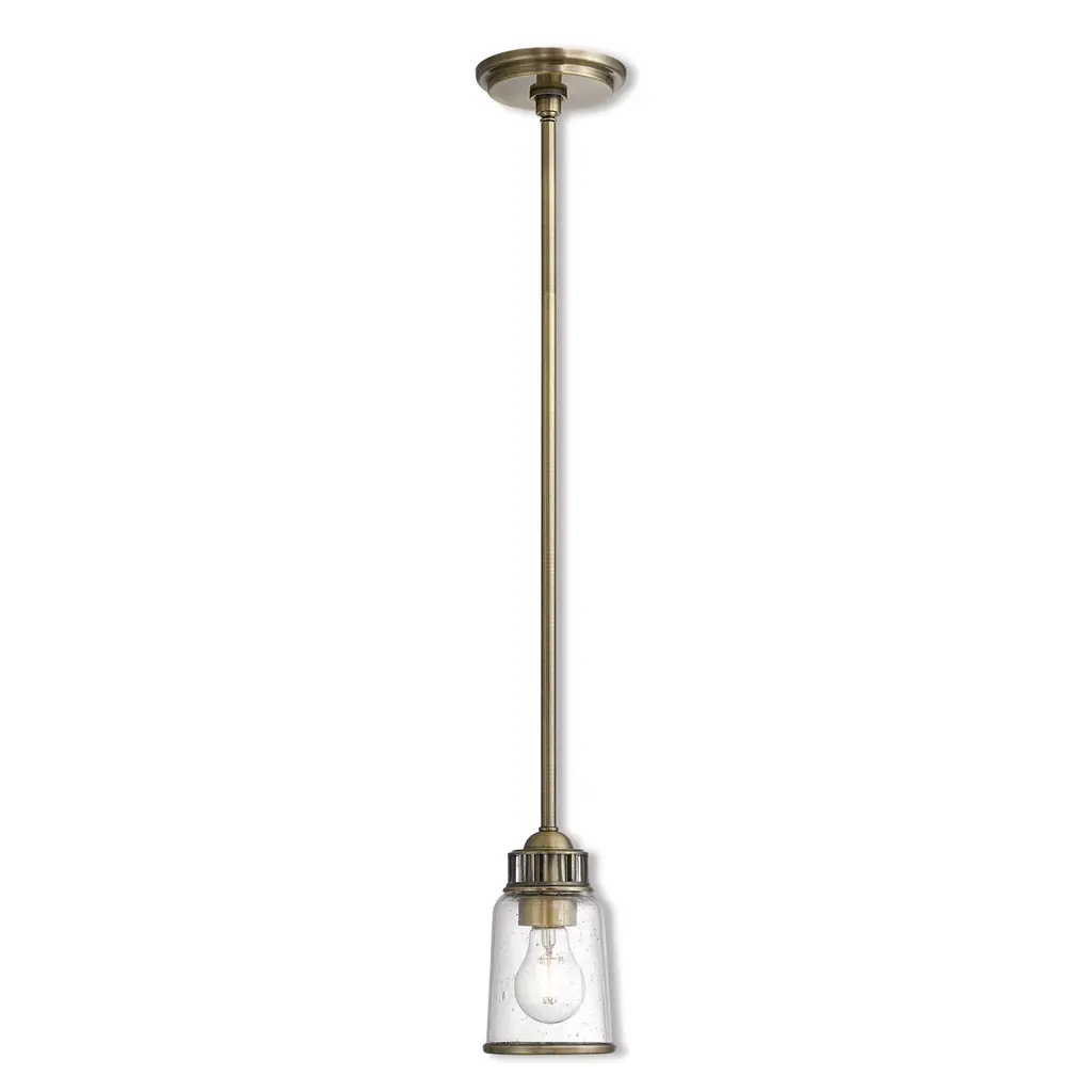 The Colton 1 Light Mini Pendant is part of the Nouveau Collection. Includes 1-6 and 2-12 inch Stems. Additional Stems sold separately.. Solid Brass 90 Degree Hang Straight Swivel for Sloped Ceilings Included