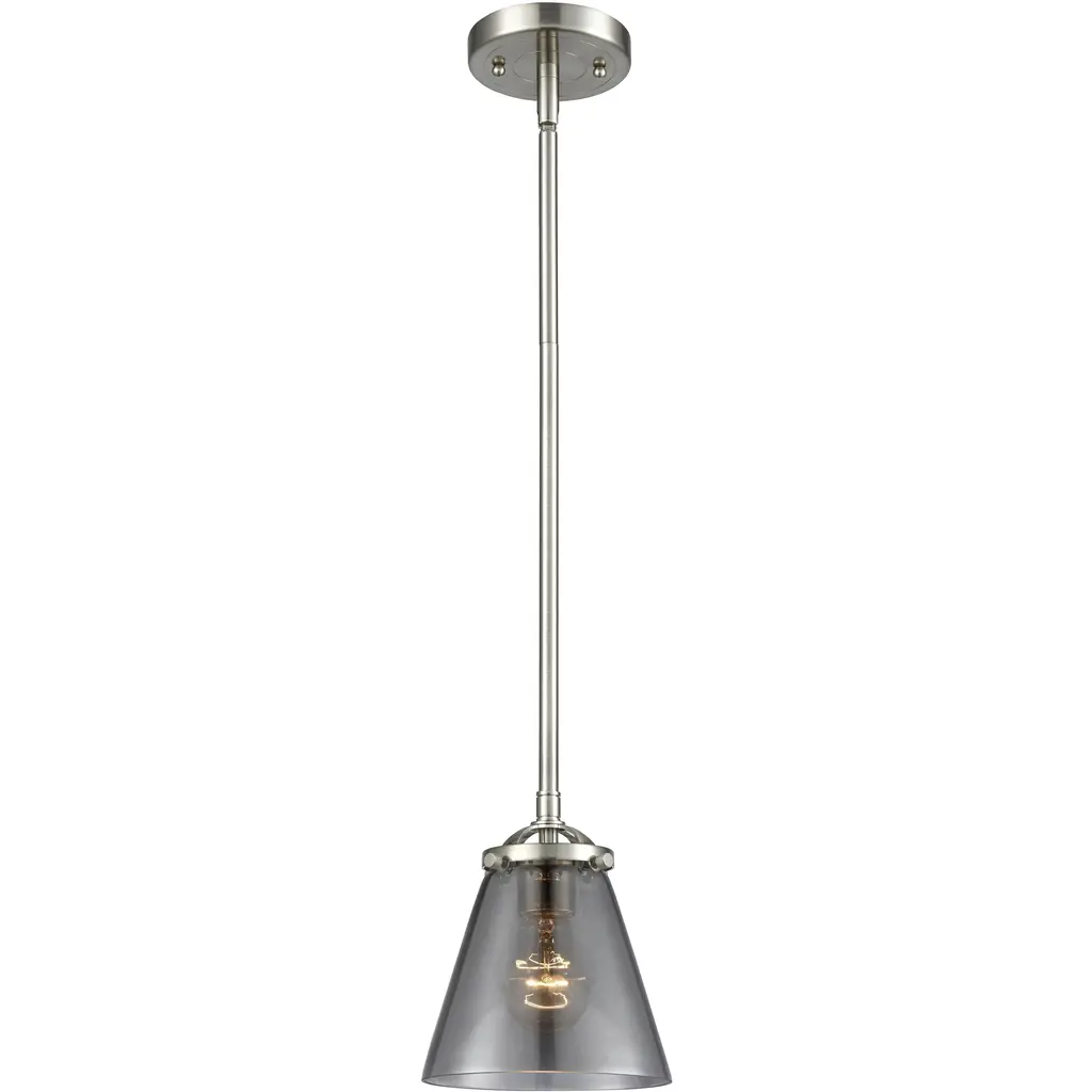 Nouveau Cone 1 Light 6.25 Inch Brushed Satin Nickel Mini Pendant Ceiling Light In Incandescent, Matte White, Nouveau