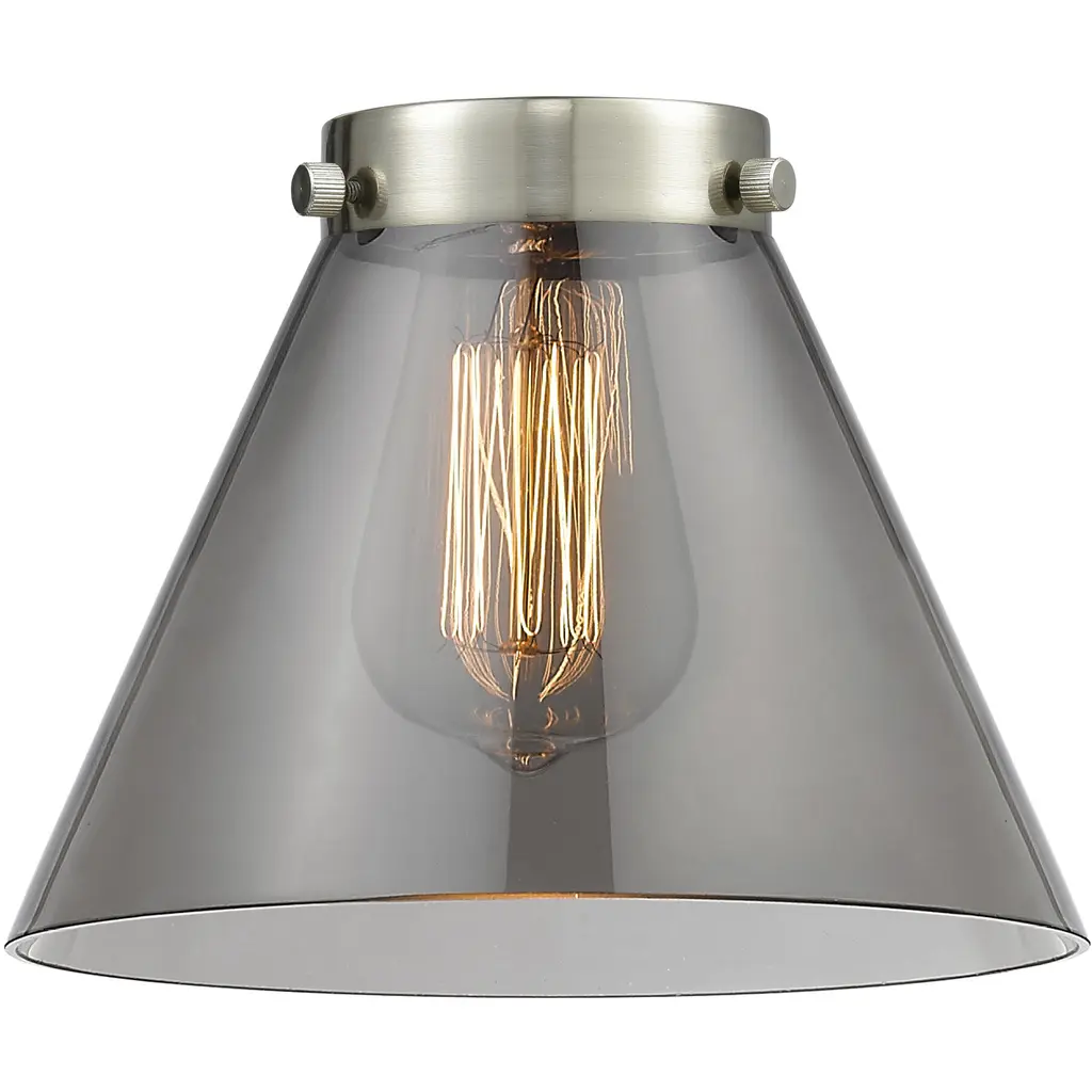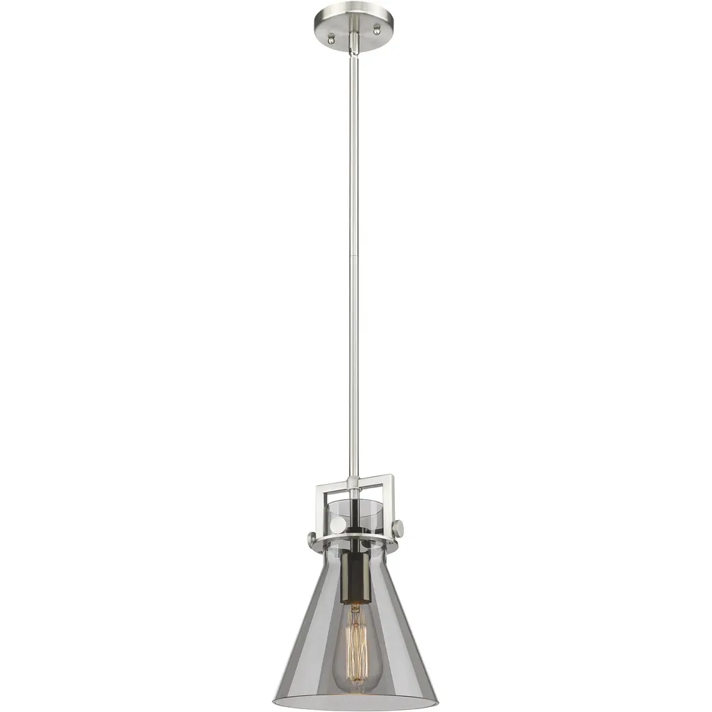 Nouveau Cone 1 Light 7.75 Inch Brushed Satin Nickel Mini Pendant Ceiling Light In Incandescent, Plated Smoke Glass, Nouveau