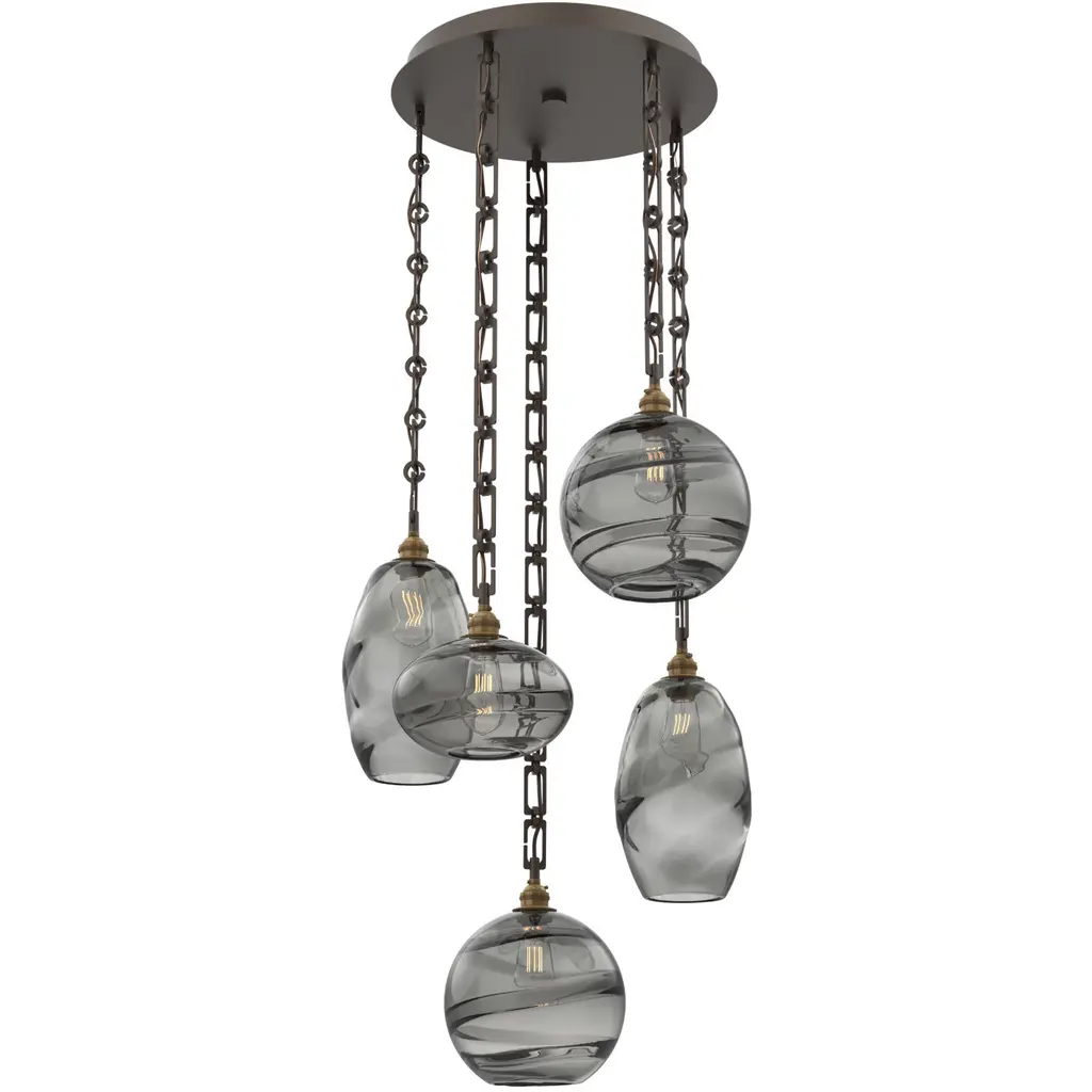 The Nebula Nova Round Pendant Chandelier features a softly undulant 10W oval shade in artisan blown crystal glass with an E26 base that takes one 40W bulb. Suspension options include cloth-braided cord or handcrafted chain in three vintage-inspired styles.