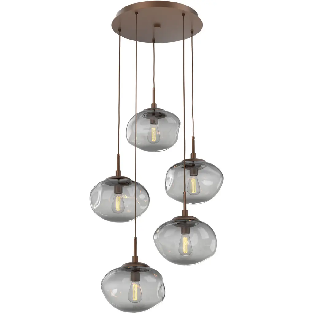 Nova Linear Multi-Pendant-5PC-Incandescent-Burnished Bronze-Smoke Blown Glass-Cloth Braided Cord-E26