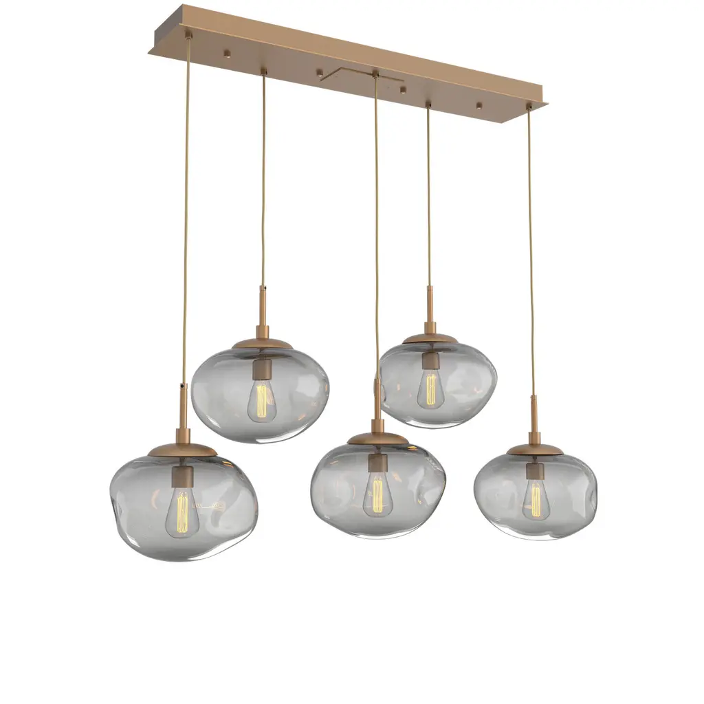Nova Incandescent 5 Light Gilded Brass Linear Pendant Ceiling Light In Smoke, Multi-Port