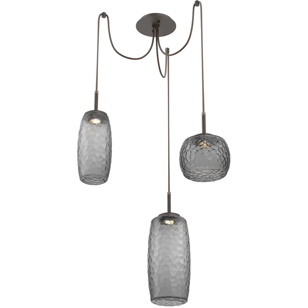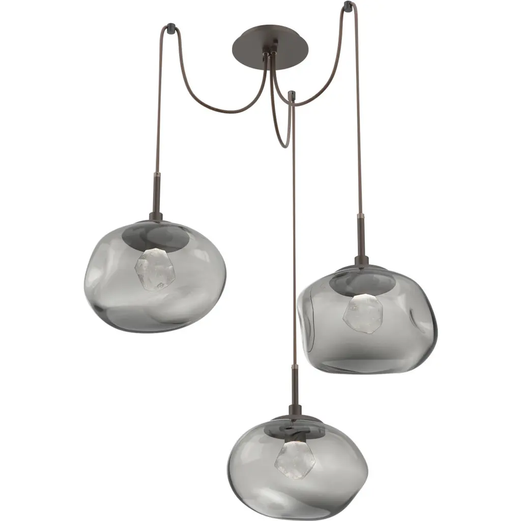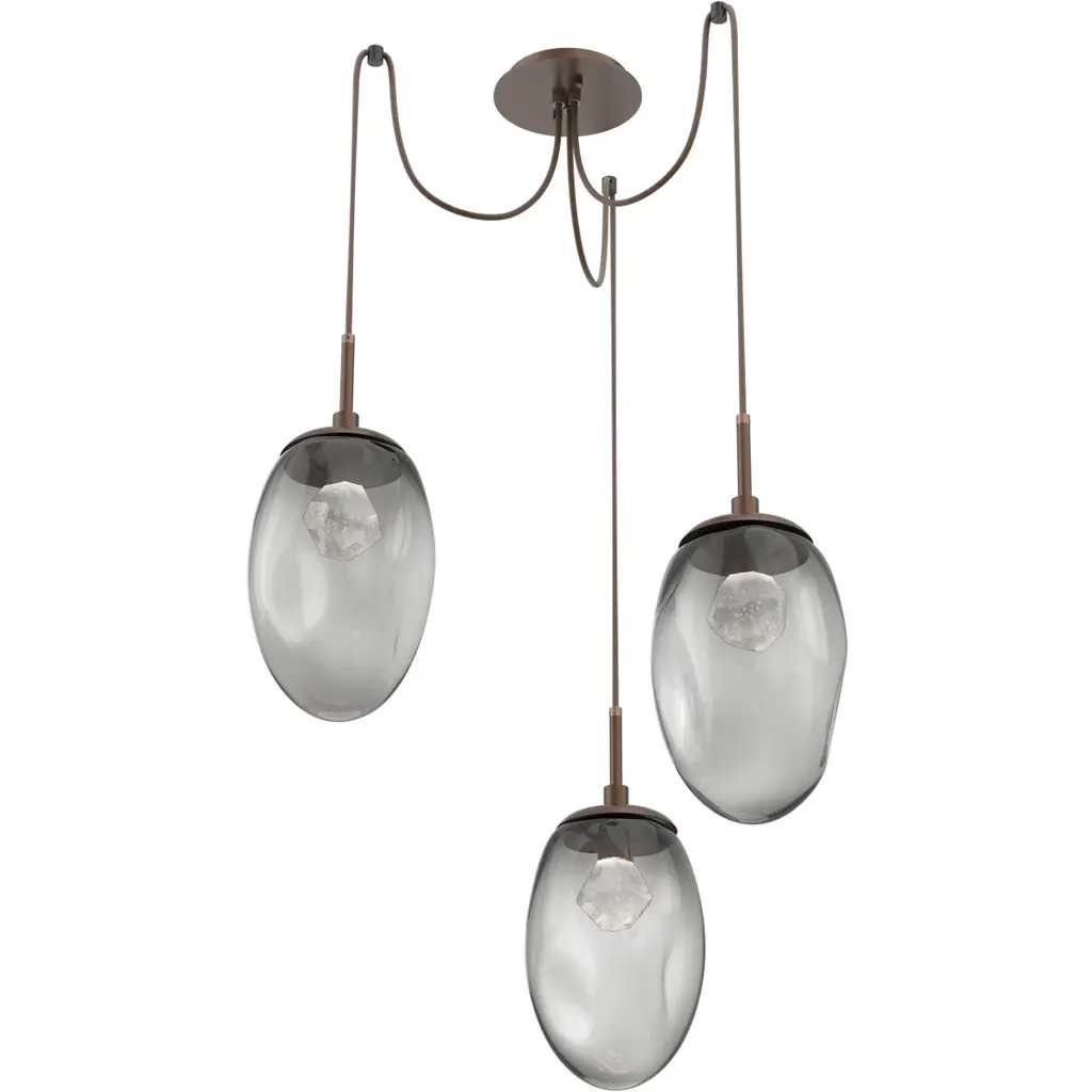 Nova Led 19 Inch Burnished Bronze Swag Multi-Pendant Ceiling Light In 2700k Led, Zircon Inner - Smoke Outer