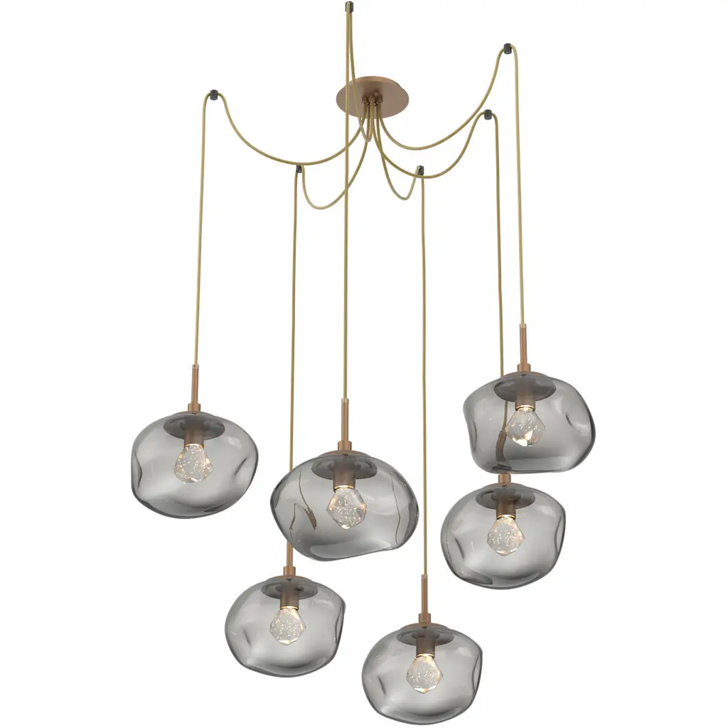 Nova Led 19 Inch Burnished Bronze Swag Multi-Pendant Ceiling Light In 2700k Led, Zircon Inner - Smoke Outer