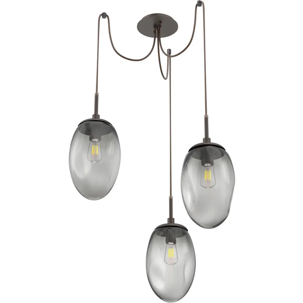 Nova Led 19 Inch Flat Bronze Swag Multi-Pendant Ceiling Light In 2700k Led, Zircon Inner - Smoke Outer