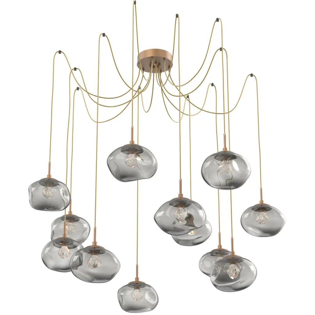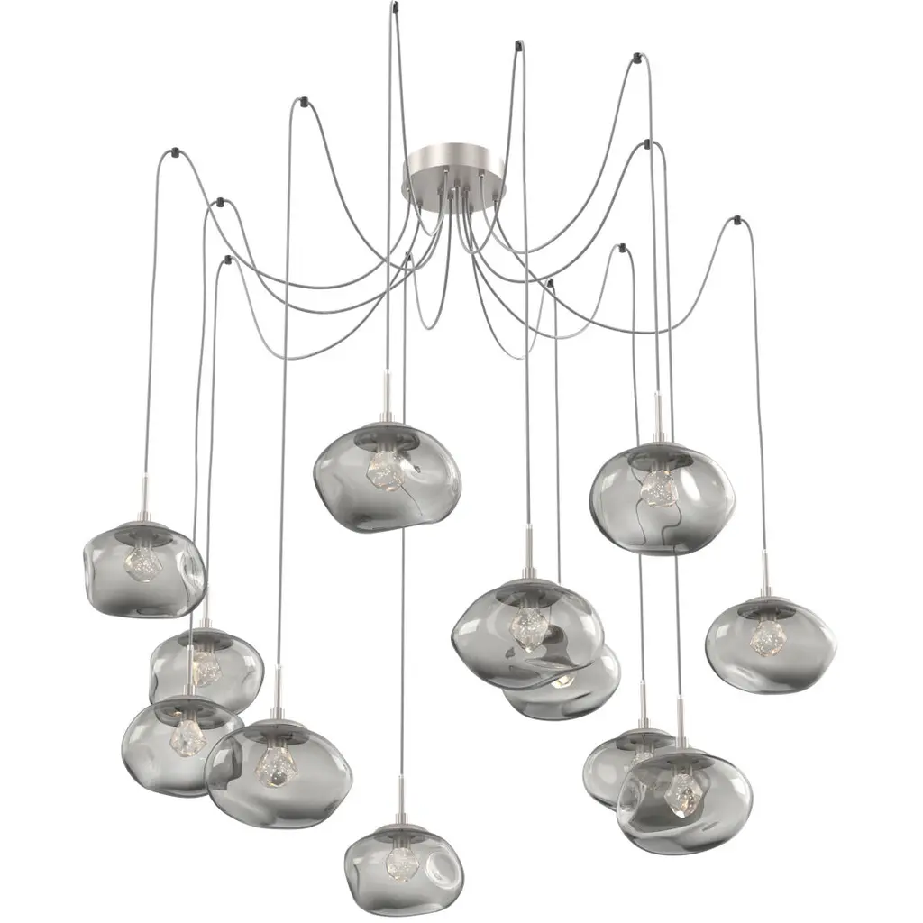 Nova Led 19 Inch Graphite Swag Multi-Pendant Ceiling Light In 3000k Led, Zircon Inner - Smoke Outer