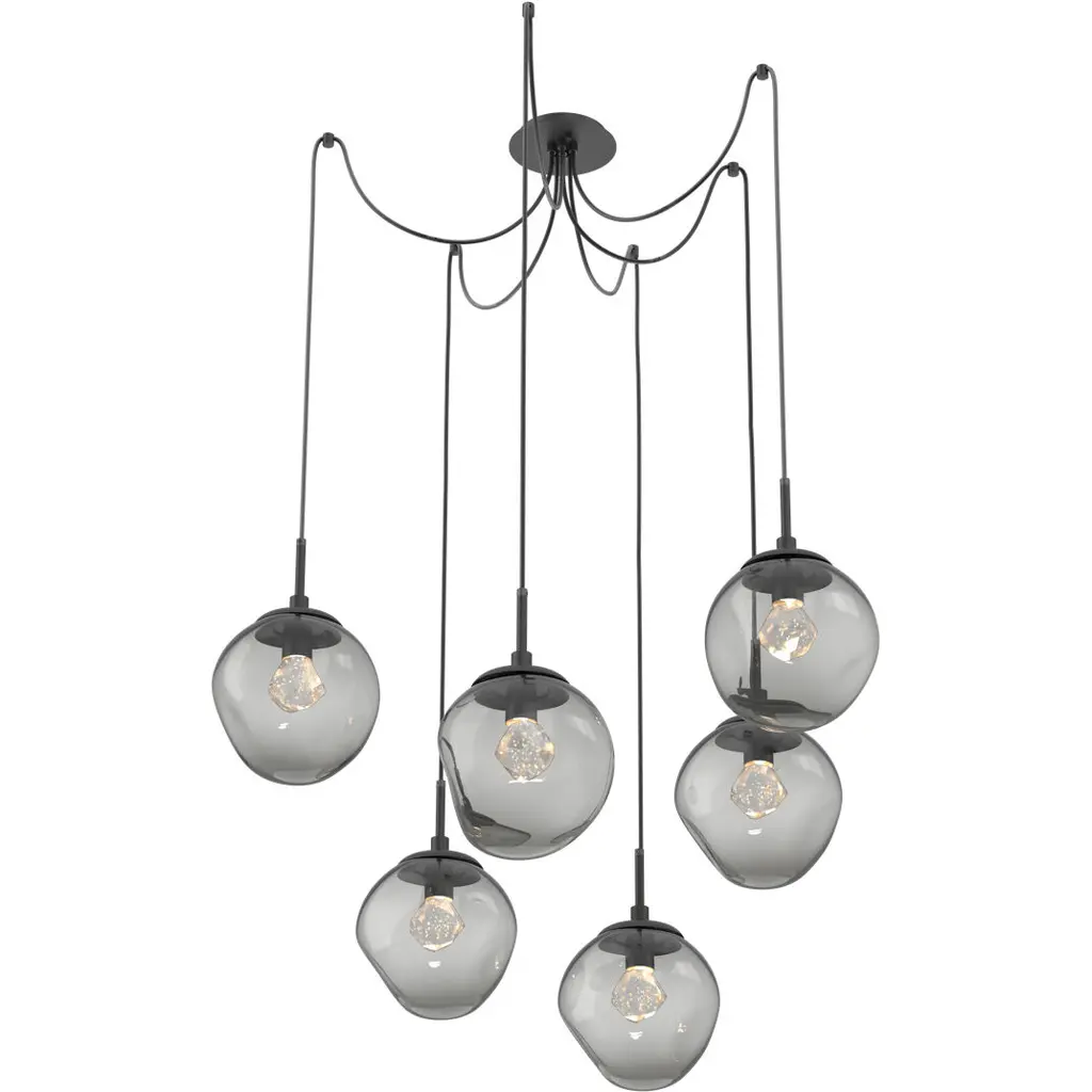 Featuring a softly undulant 10W oval shade in artisan blown crystal glass that encloses an LED-illuminated cast crystal glass diffuser, this versatile chandelier style enables customization of the placement and height of each pendant. Choose from several glass colors and diffuser styles. For a more traditional look, order with an E26 base that takes one 40W bulb.