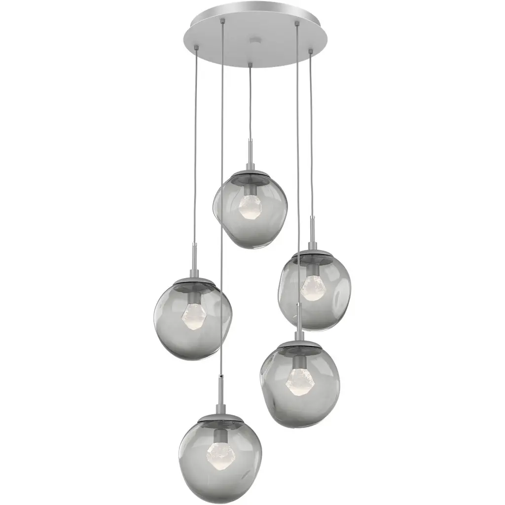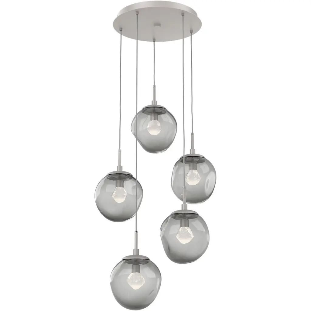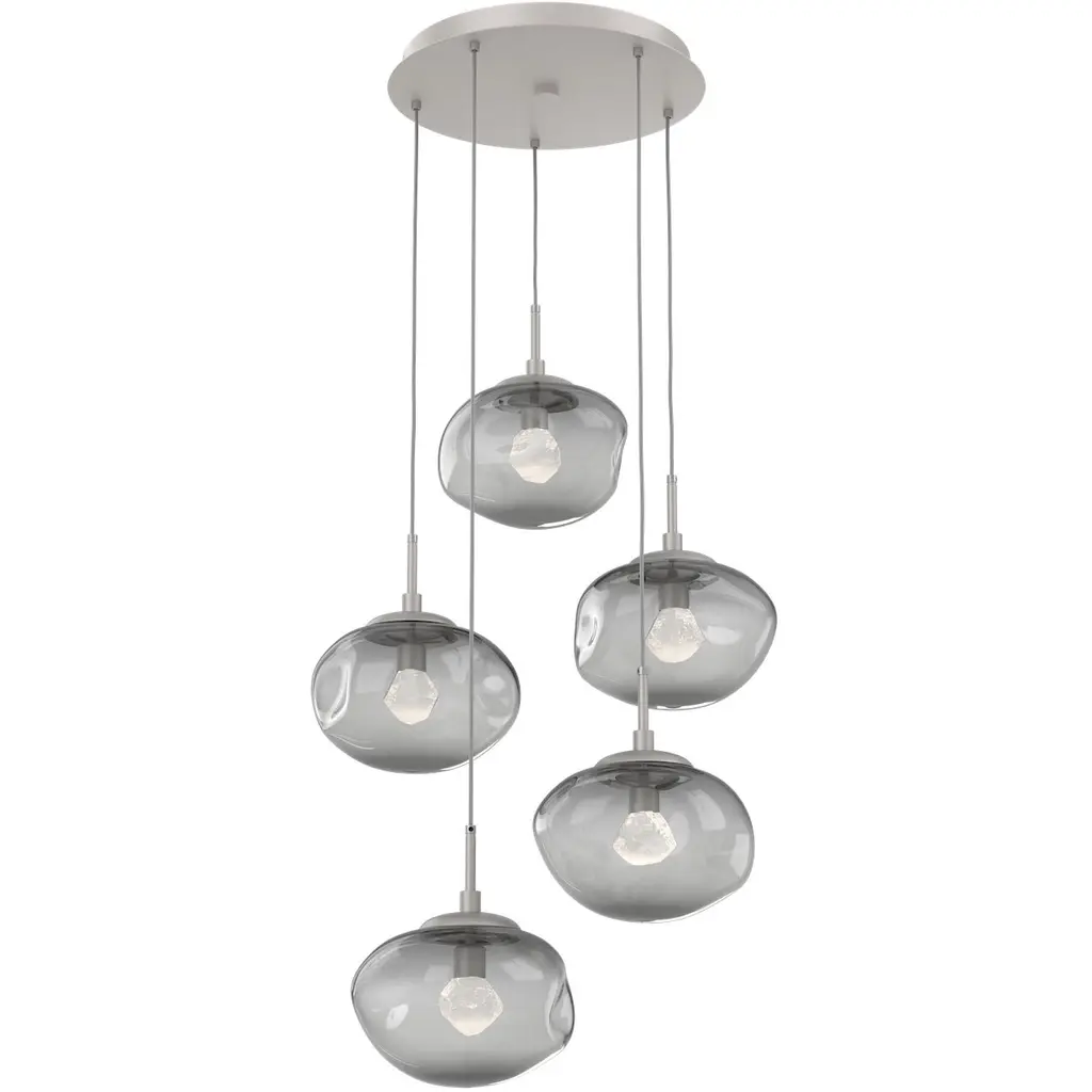 Nova Round Multi-Pendant-5PC-LED-Classic Silver-Zircon Inner - Smoke Outer-Cloth Braided Cord-LED 2700K