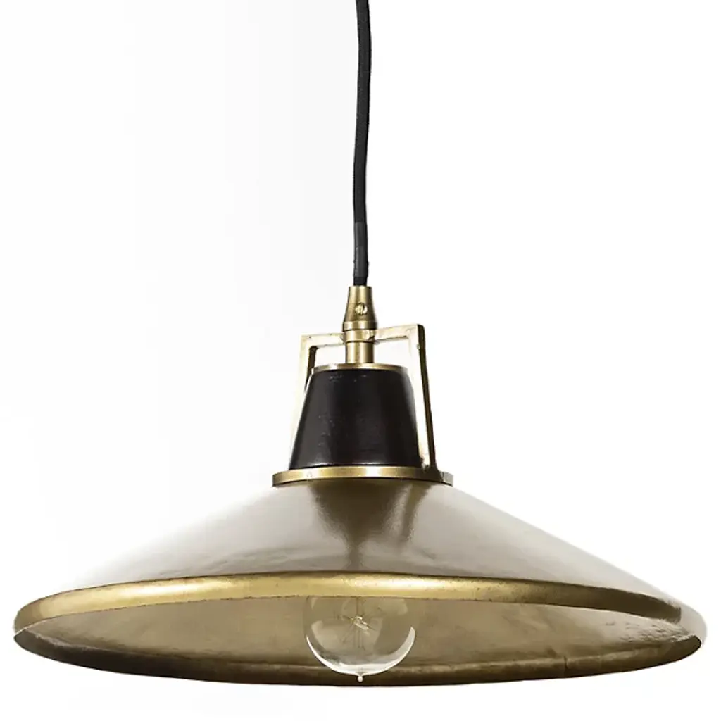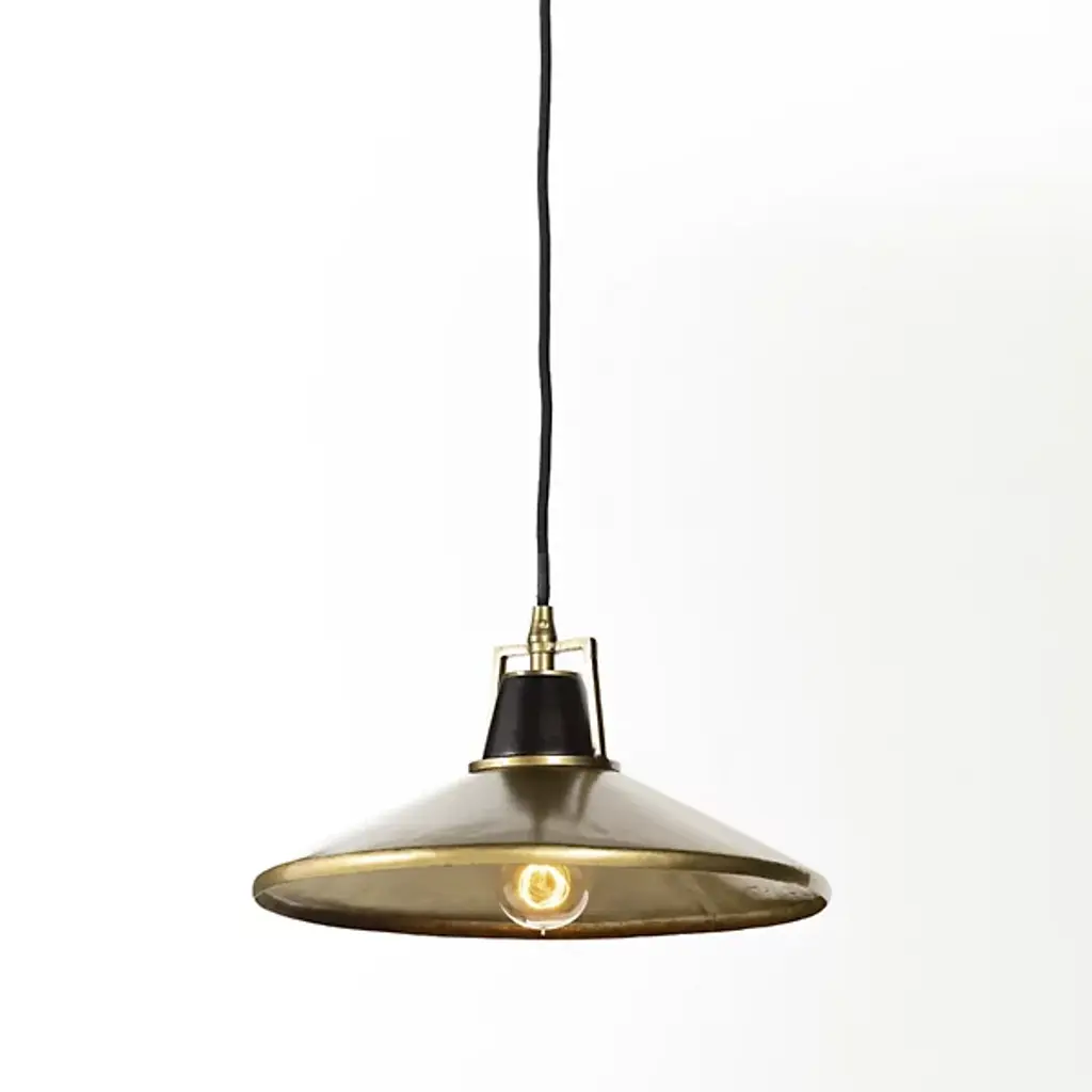Inspired by mid-century styling, the Novak Pendant from Four Hands with an elegant throwback presentation of enduring materials. The piece reveals its versatility with a slender cord suspension that’s great in series. One’s eyes gravitate to the contrasting colors of the pendant’s lamp holder and hardware. A clean cone shade gives the piece a sharp silhouette. Lamping nestles inside to disperse a generous downlight with minimal glare.
