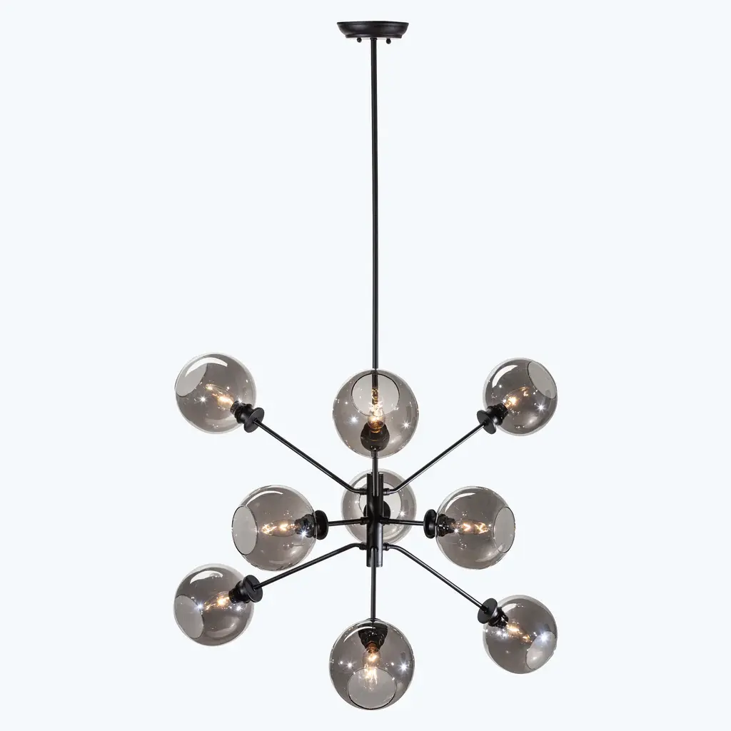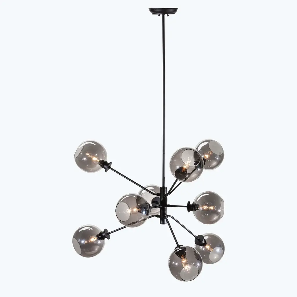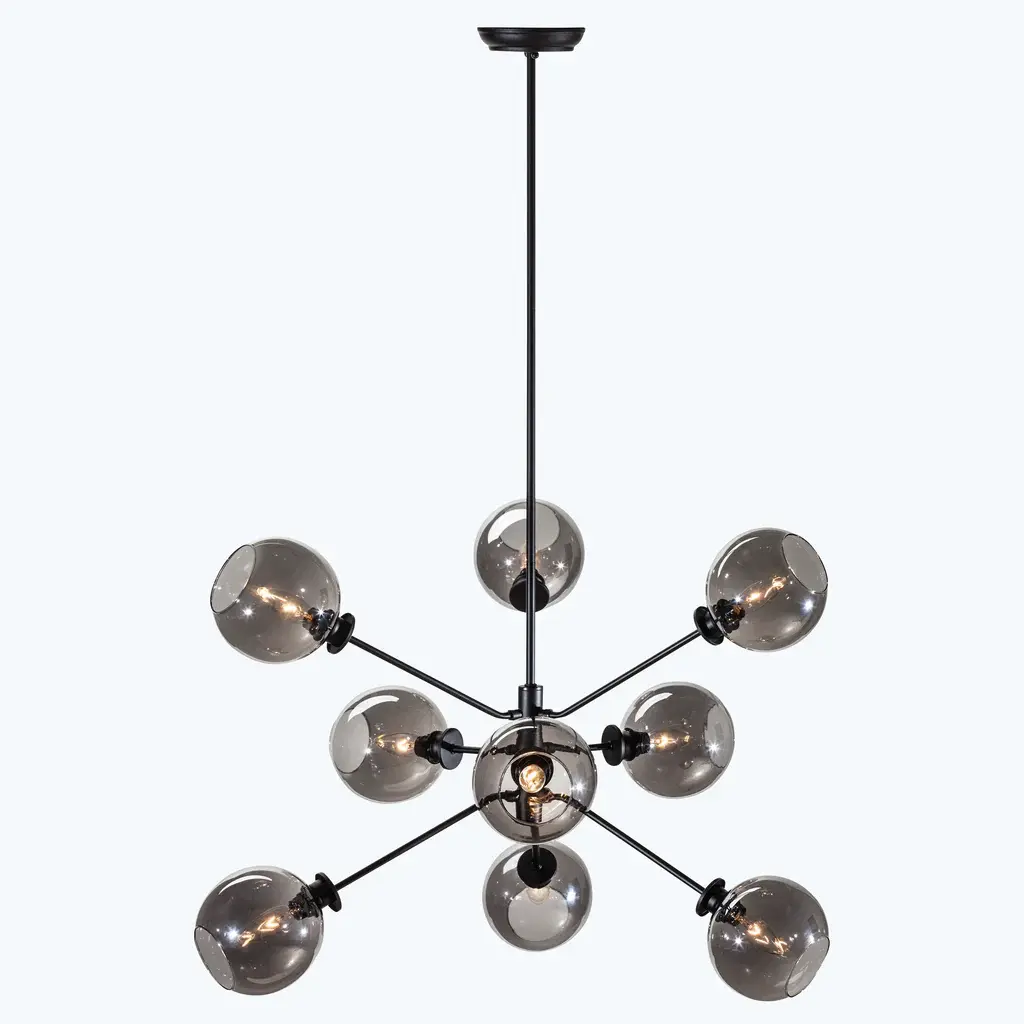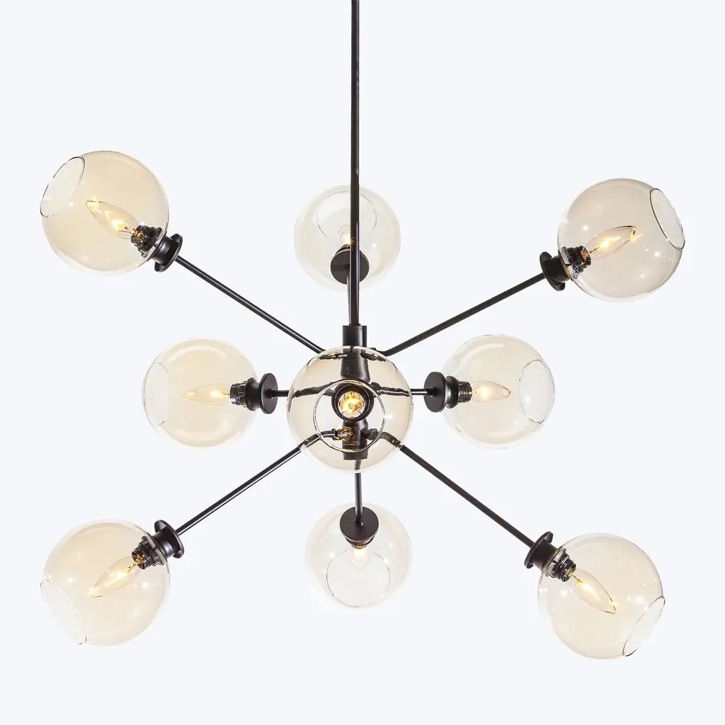 The Atom 9-Light Glass Pendant Fixture projects a smart contemporary dynamic into both residential and commercial spaces with its orbs diffusing light in every direction. Featuring nine champagne, clear, or grey glass orbs on articulated multi-directional metal arms, the Atom 9 is a unique urban lighting pendant that expresses a sophisticated modern energy. Beautifully paired with a dimmer switch for easy adjustment and mood matching.