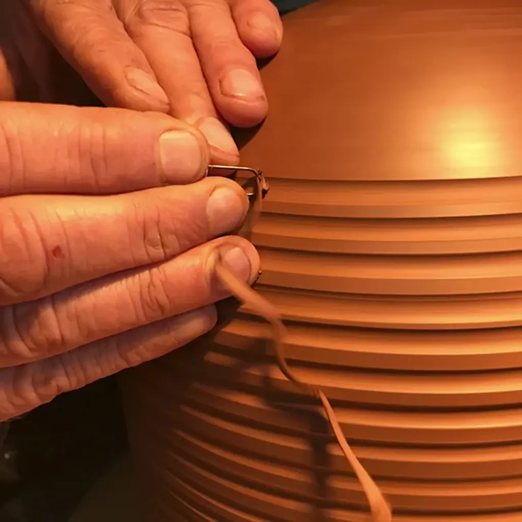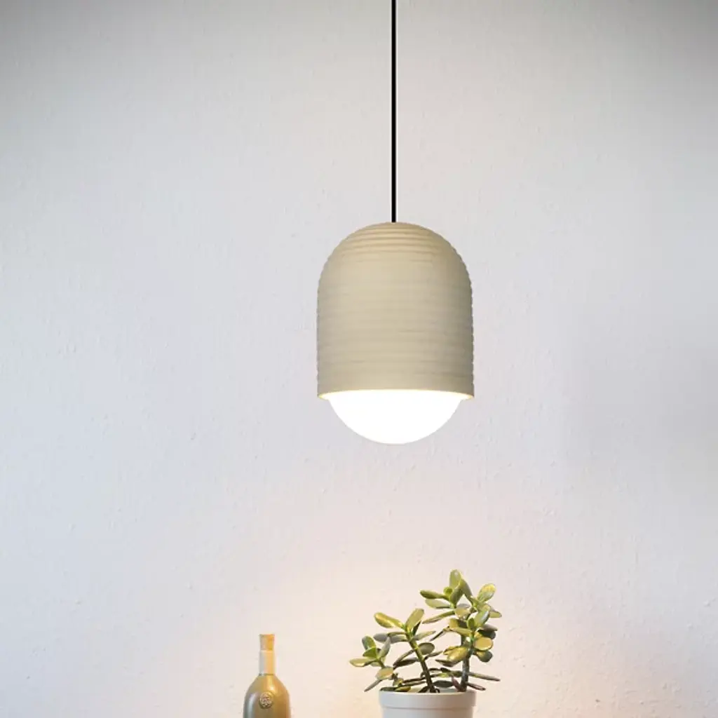 The Nucli Outdoor Mini Pendant from El Torrent adds a clever, contemporary character to indoor and outdoor spaces alike. Designed by Joan Genebat to focus on soulful, simple materials, each fixture features a handmade ceramic dome shade, grooved with horizontal rings to add subtle texture, and places strong lamping into its center. Direct light is mellowed into friendly warmth by a translucent glass shade that arcs across its open base. It creates a transformative contrast with the materials as the vibrant, ceramic light housing appears to float when illuminated, adding a rich, vibrant presence to gathering spaces.